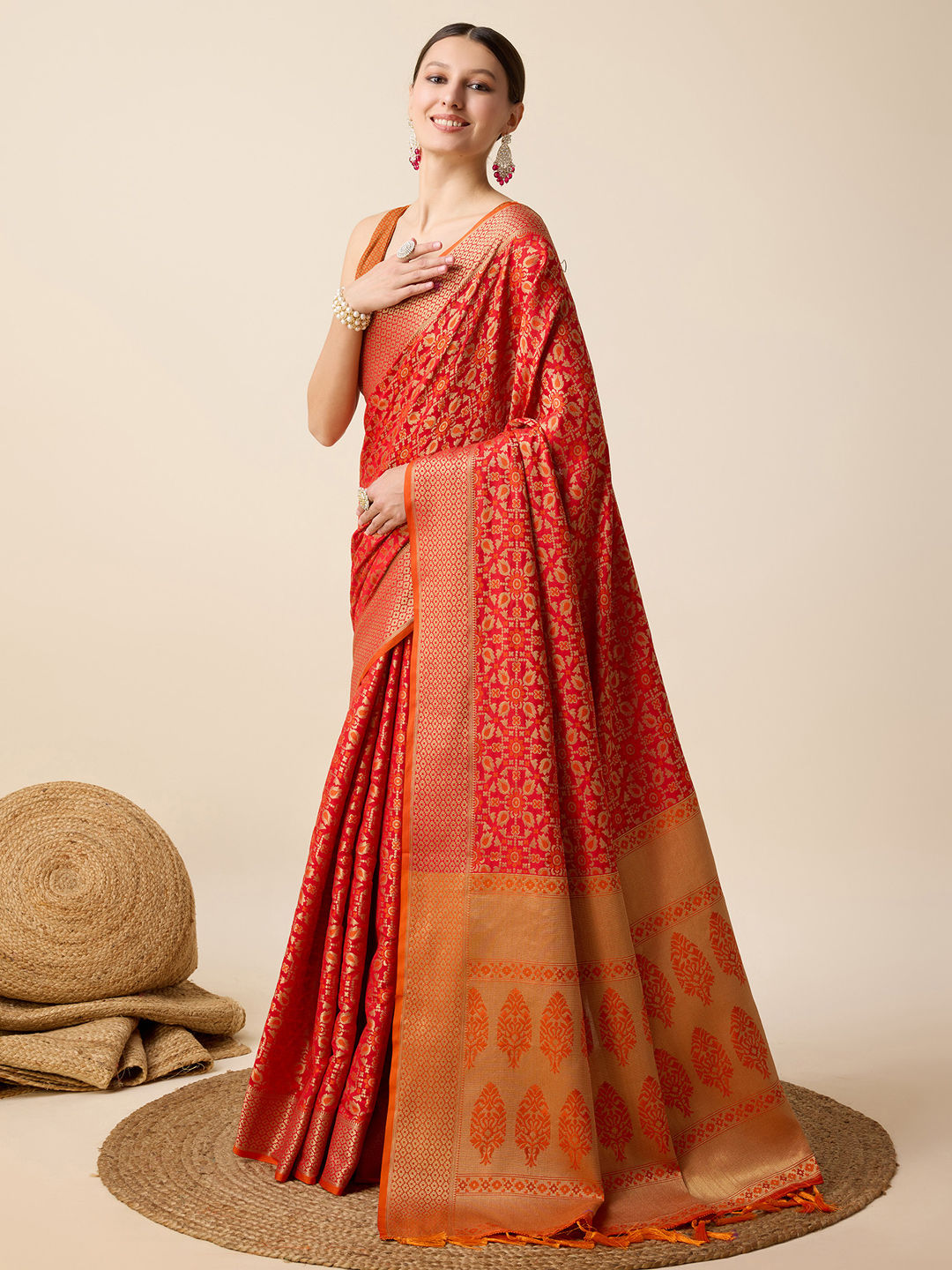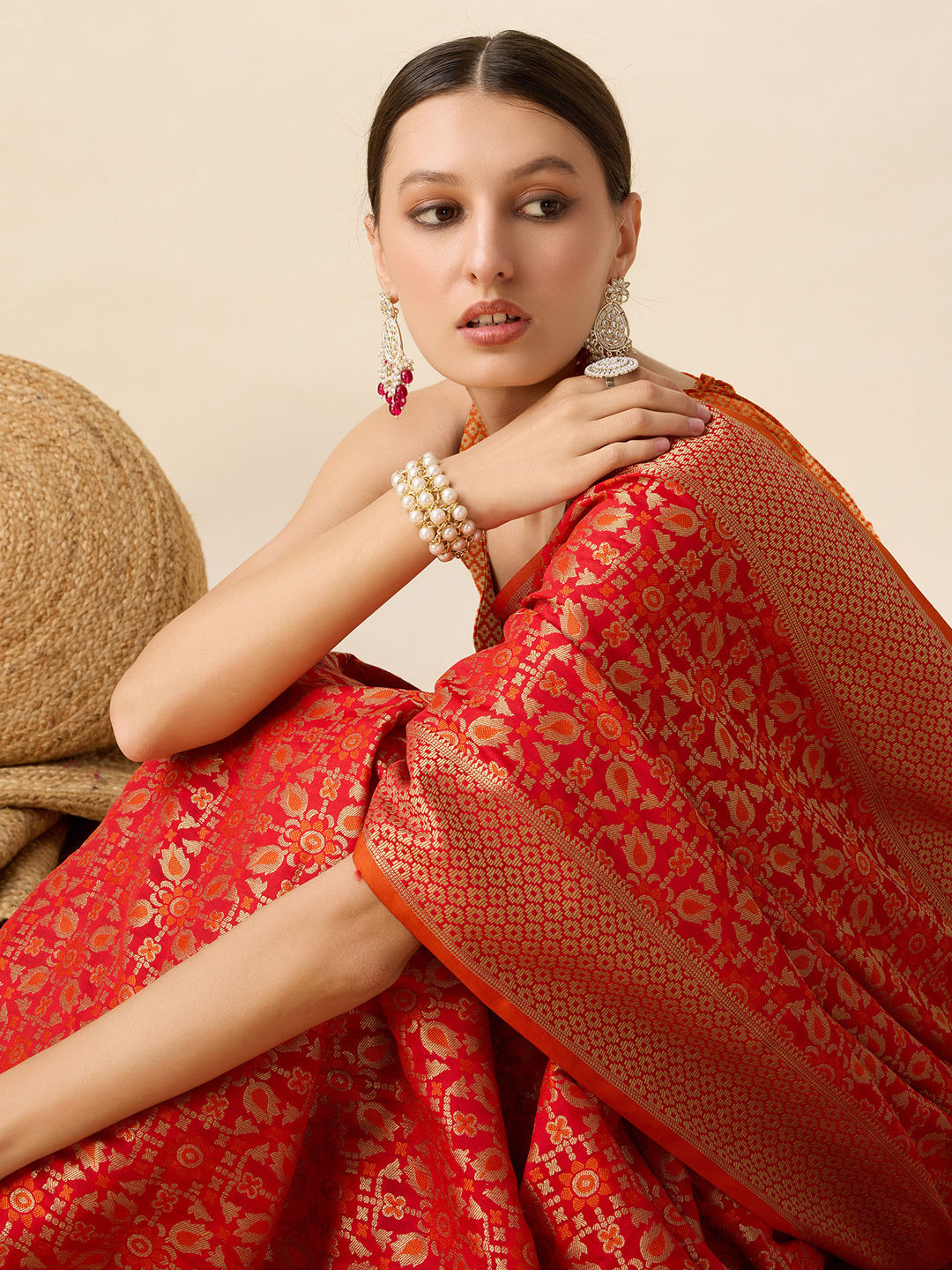 in Red and Maroon with Weaving work