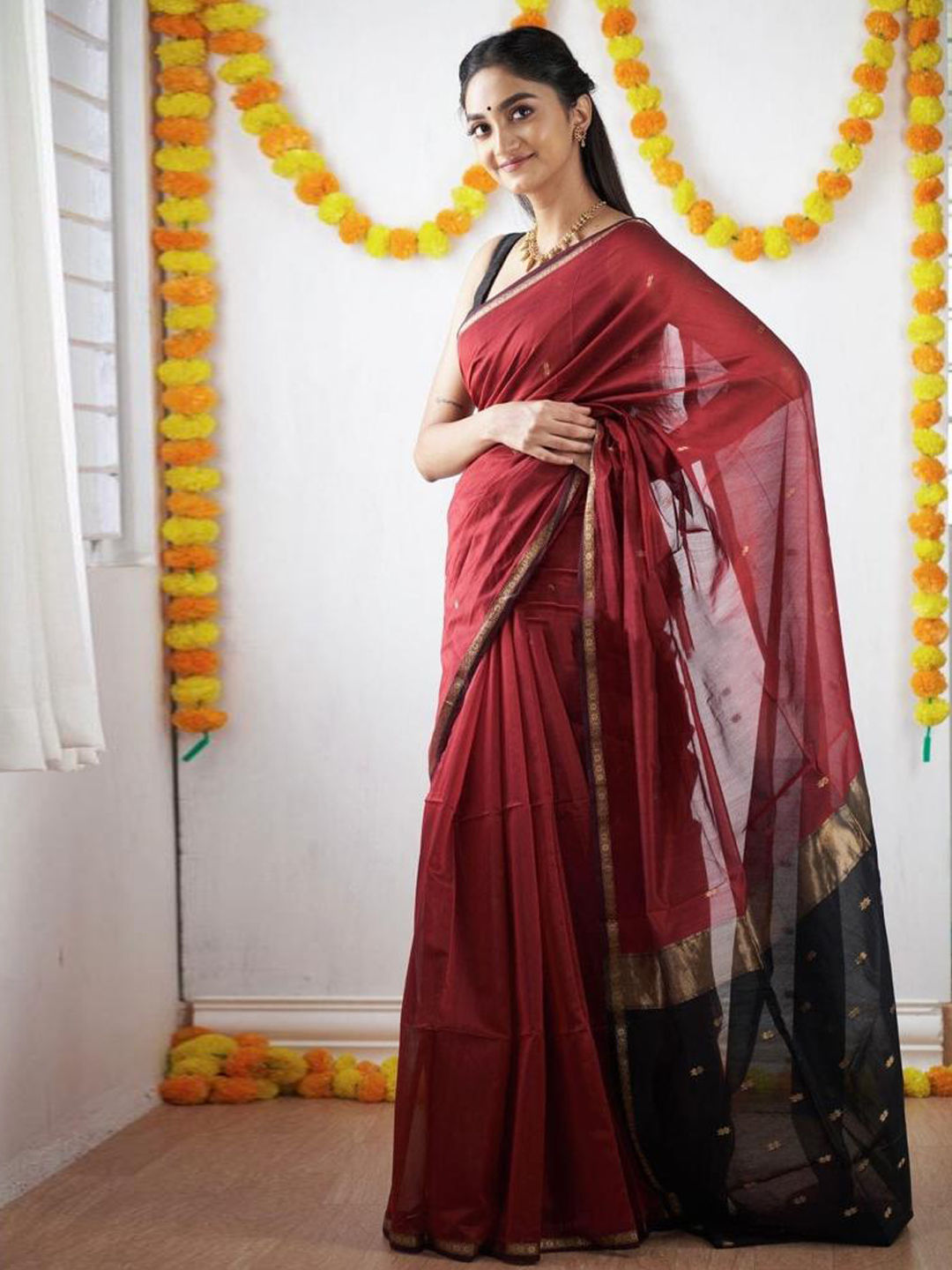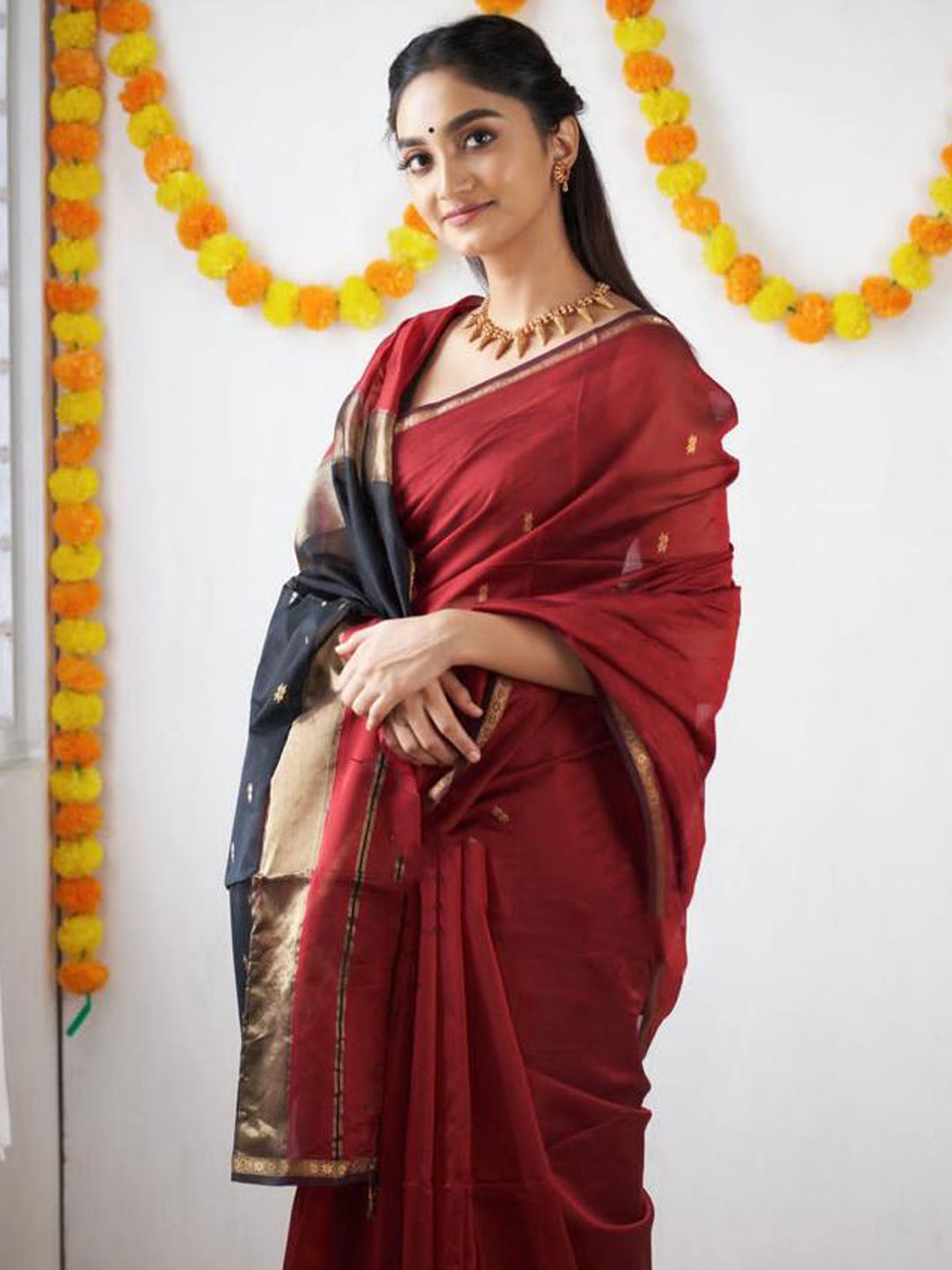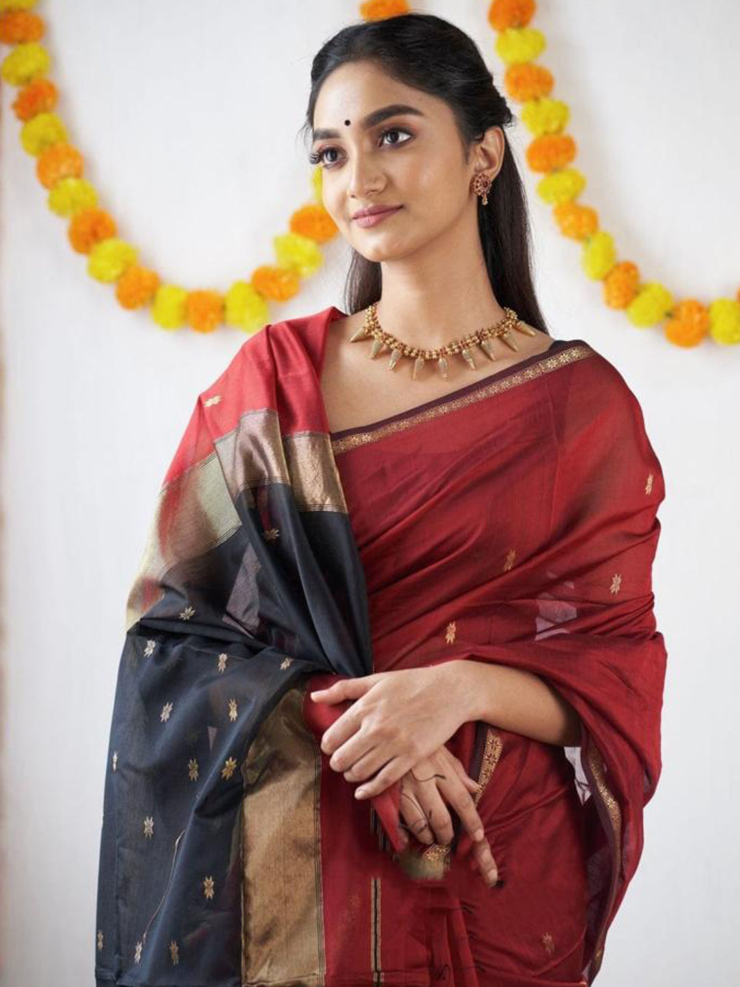 Red and Maroon color Saree in Art Silk fabric with Zari work