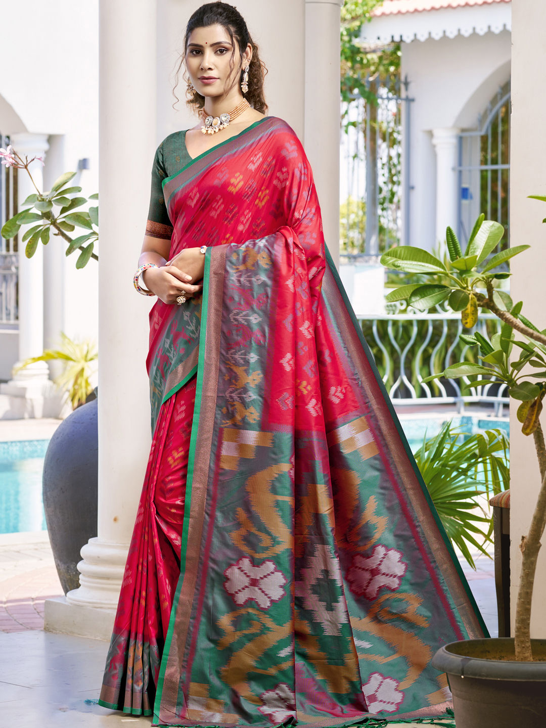 in Red and Maroon with Zircon work