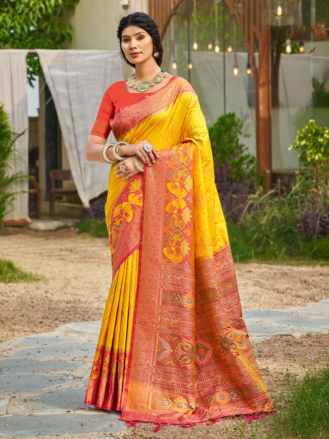 Art Silk Traditional Saree in Yellow with Weaving work