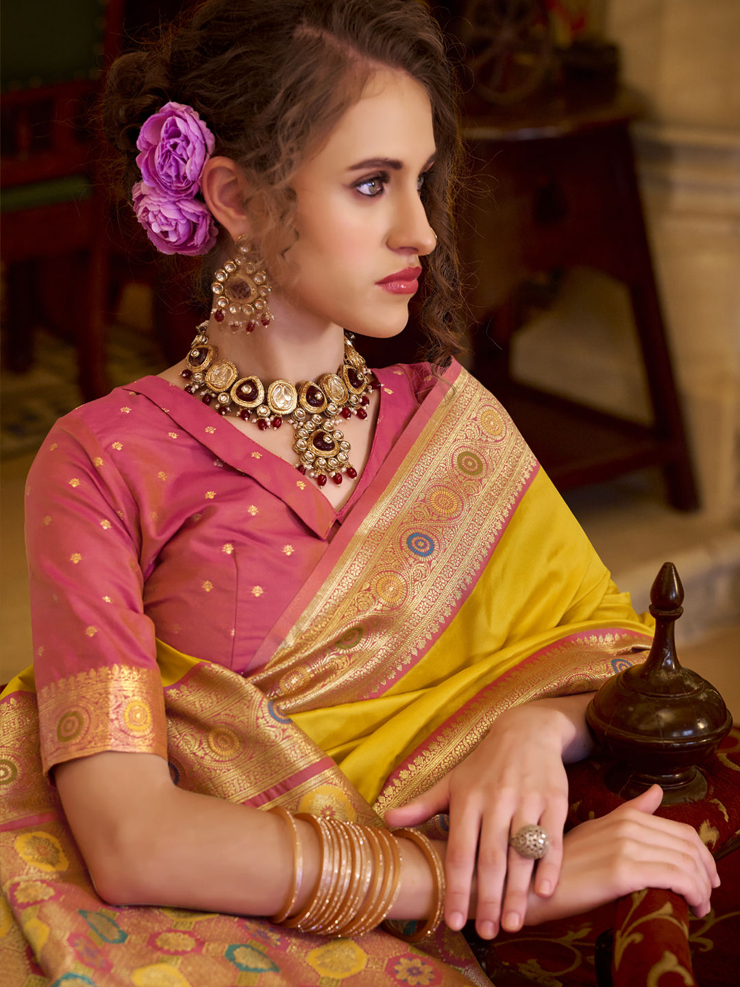 in Yellow with Weaving work