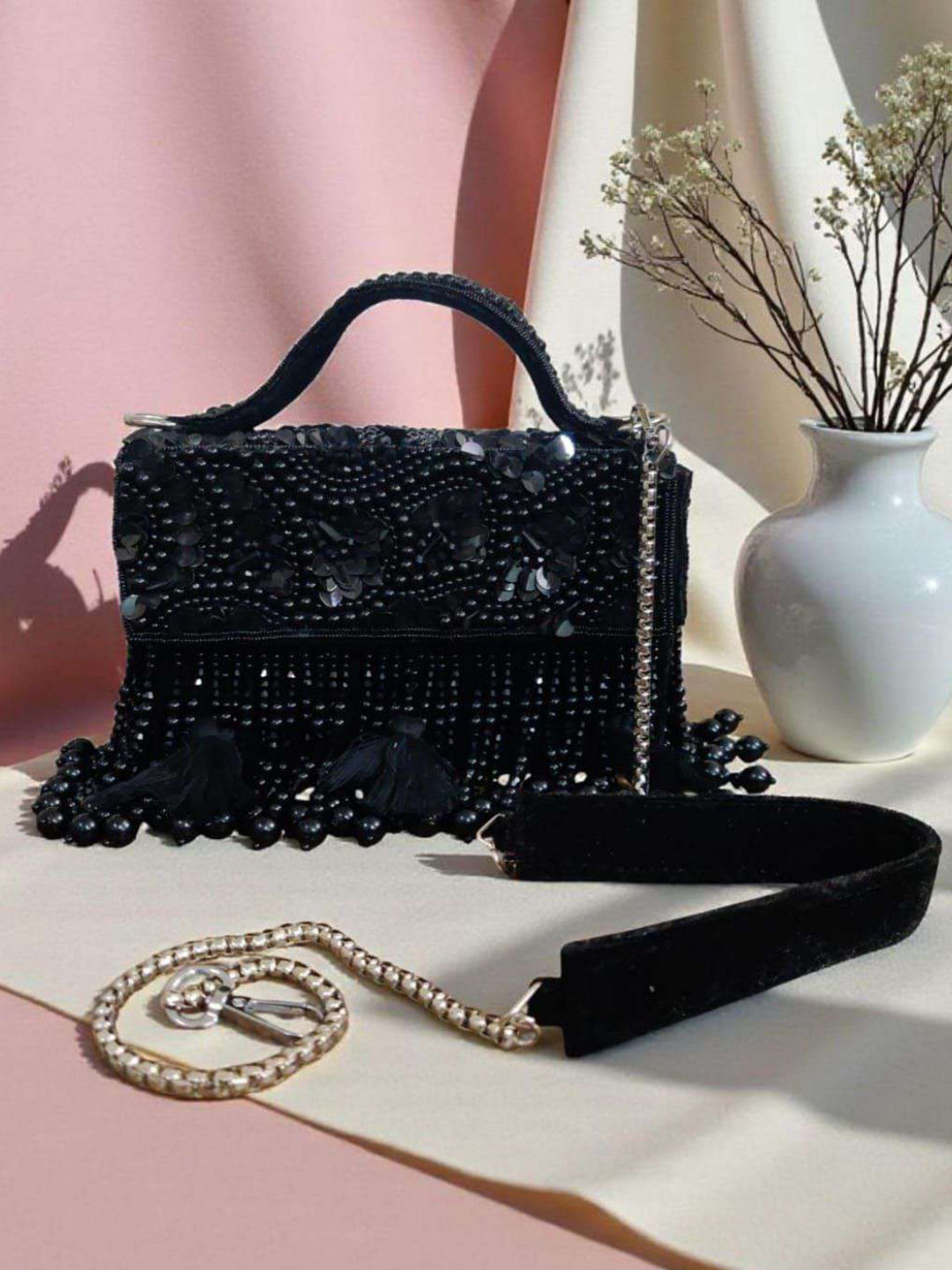 Black and Grey color Clutches in Art Silk fabric with Moti work