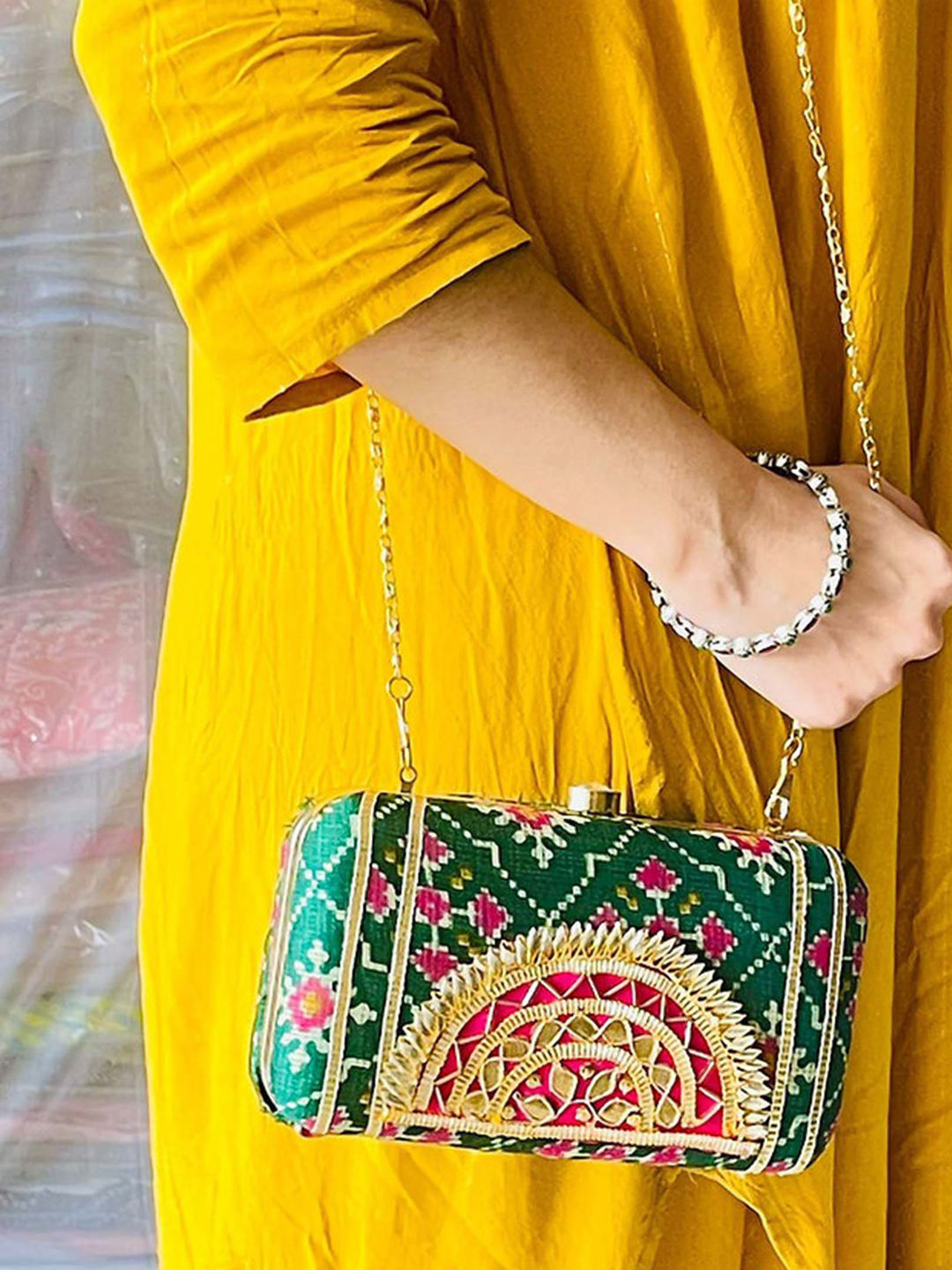 Green color Clutches in Art Silk fabric with Gota Patti work
