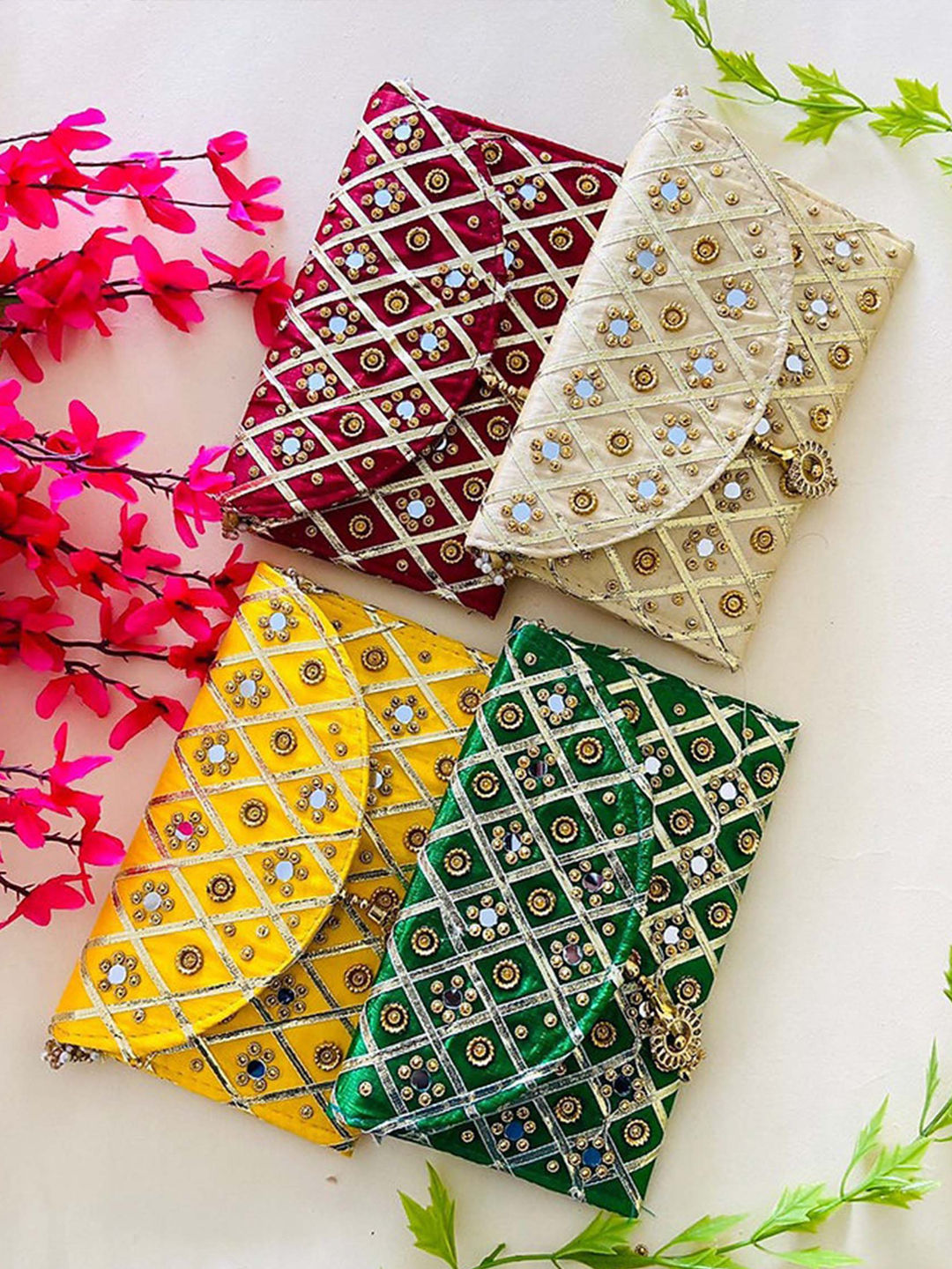 Art Silk Festive Clutches in Red and Maroon with Embroidered work