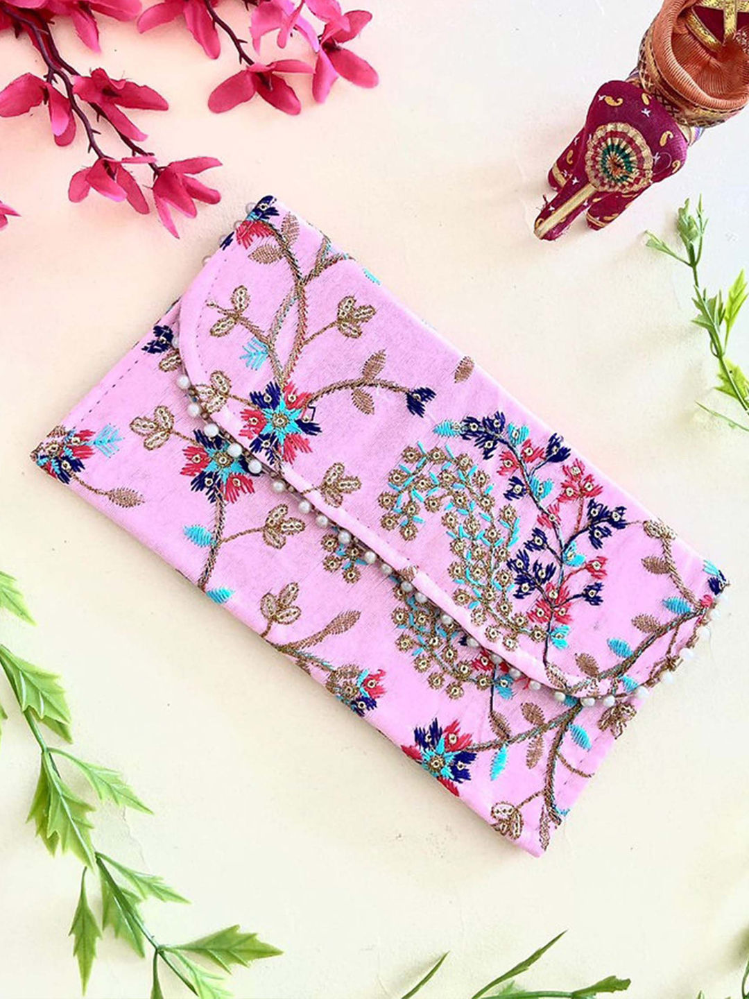 Pink and Majenta color Clutches in Art Silk fabric with Embroidered work