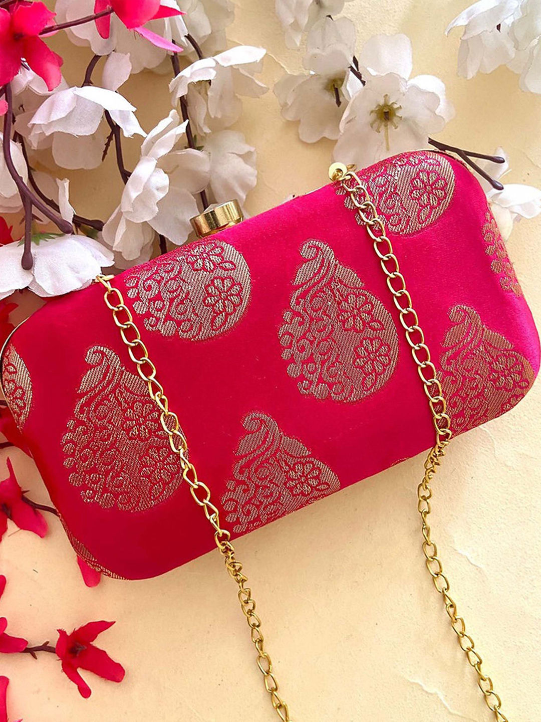 Pink and Majenta color Clutches in Art Silk fabric with Weaving work