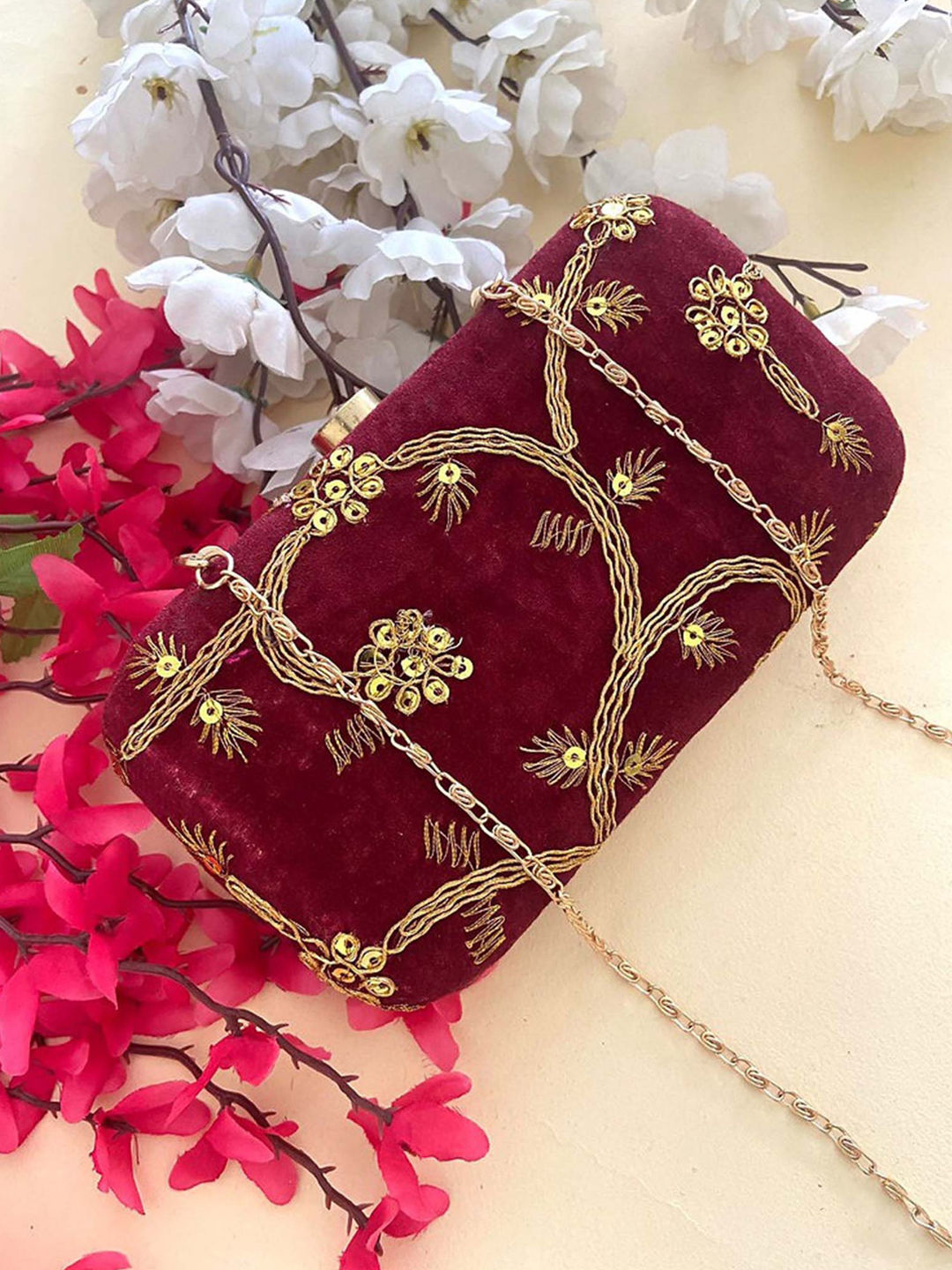 Fancy Fabric Festive Clutches in Red and Maroon with Sequence work