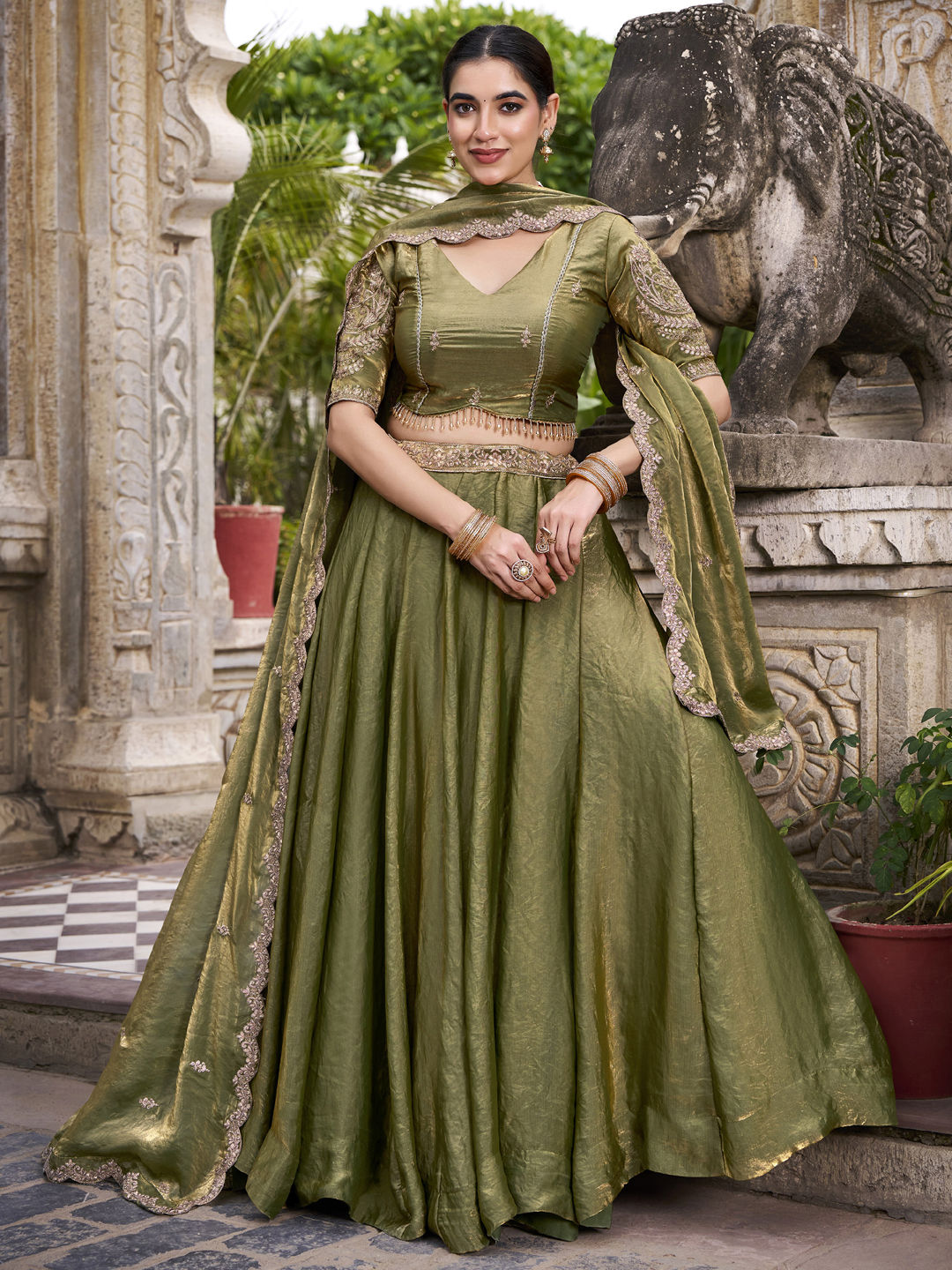 Green color Lehenga in Art Silk fabric with Embroidered, Sequence, Thread work