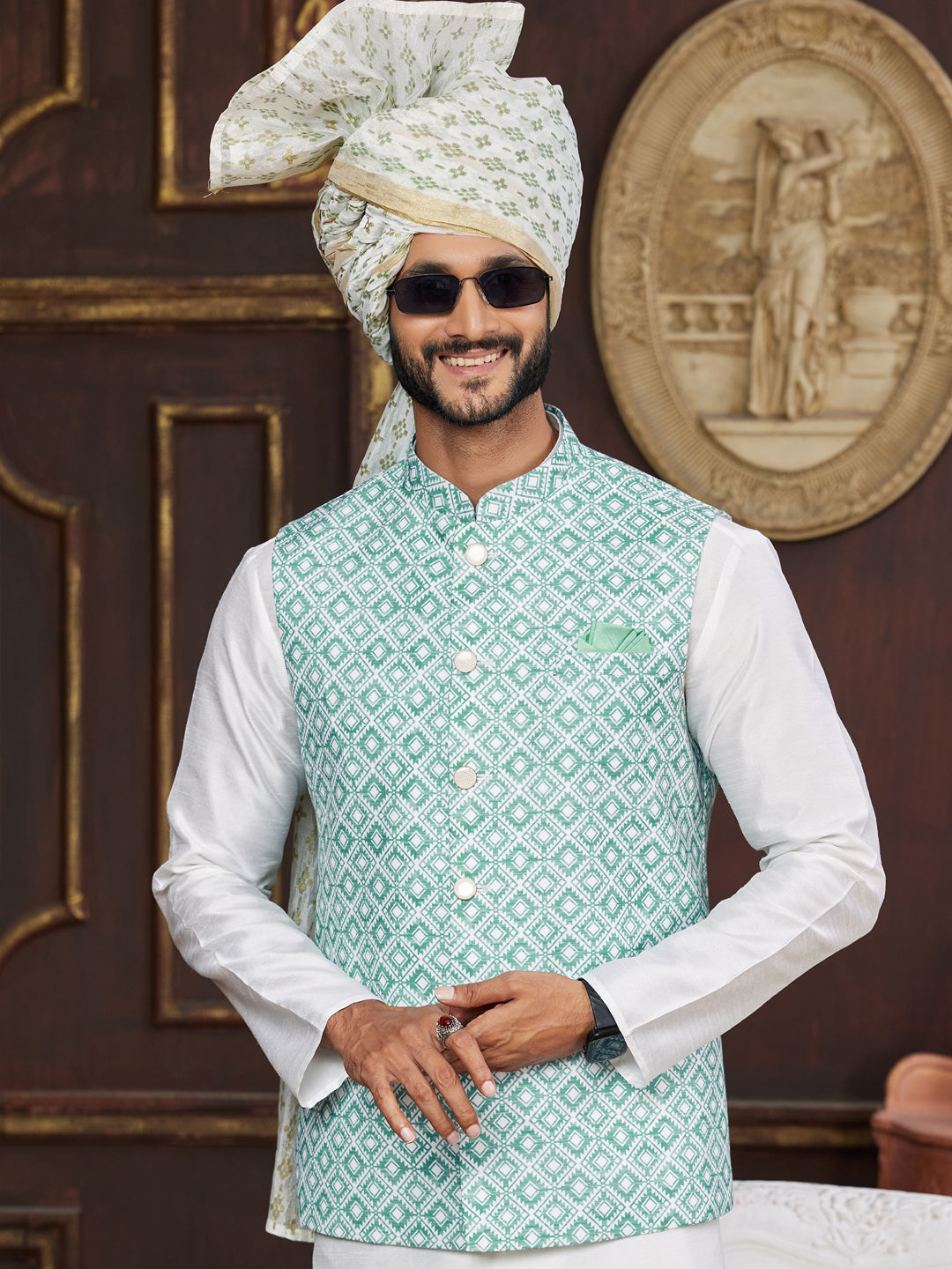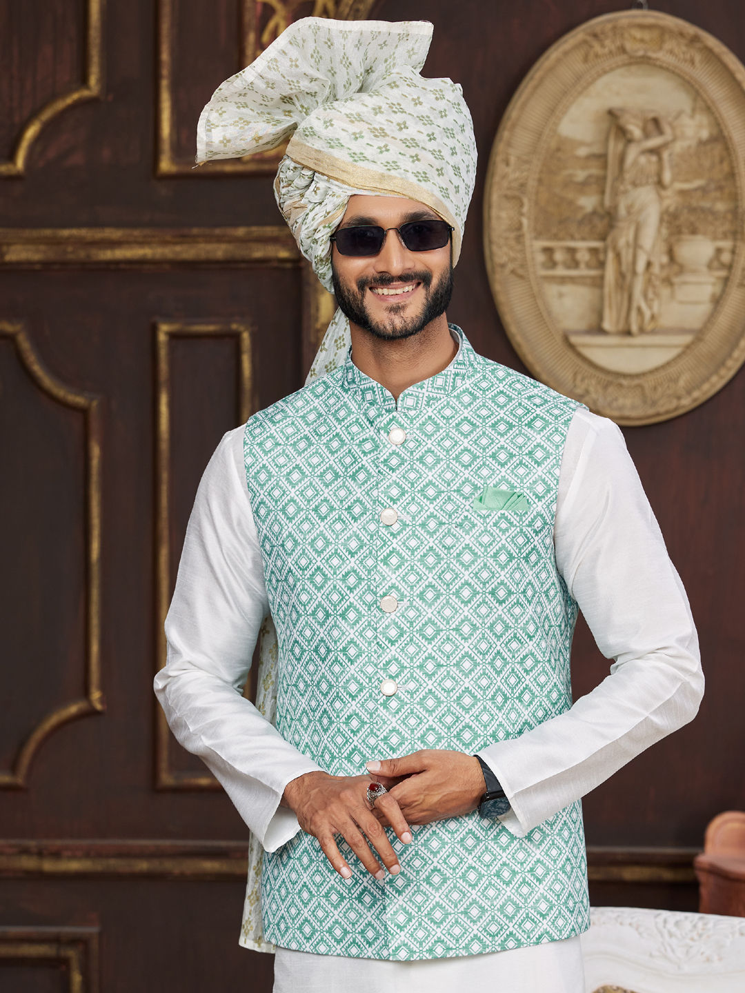 Art Silk Party Wear Nehru Jacket in Multicolor with Digital Print work