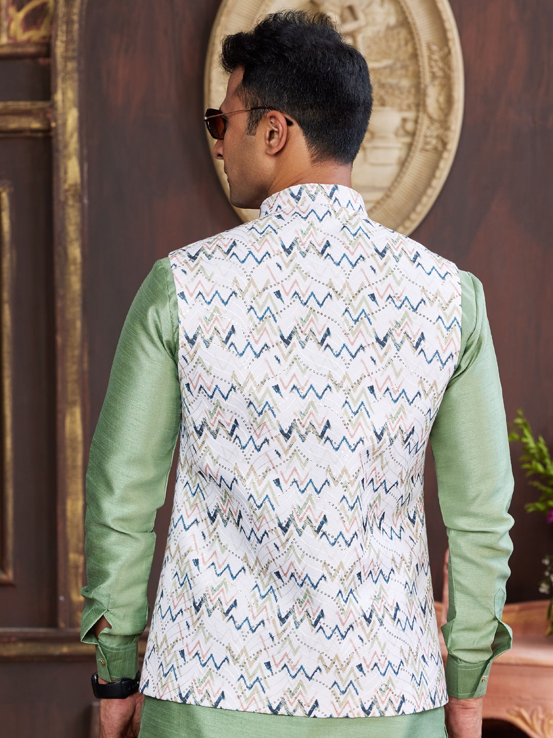 Art Silk Party Wear Nehru Jacket in Multicolor with Sequence work