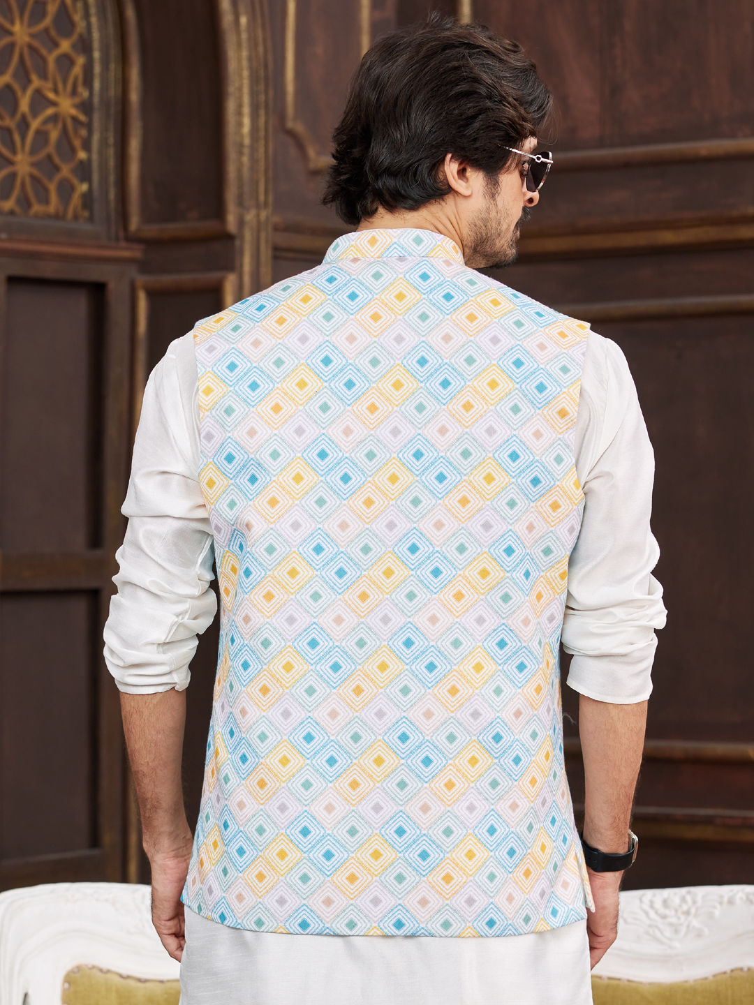 Art Silk Party Wear Nehru Jacket in Multicolor with Sequence work
