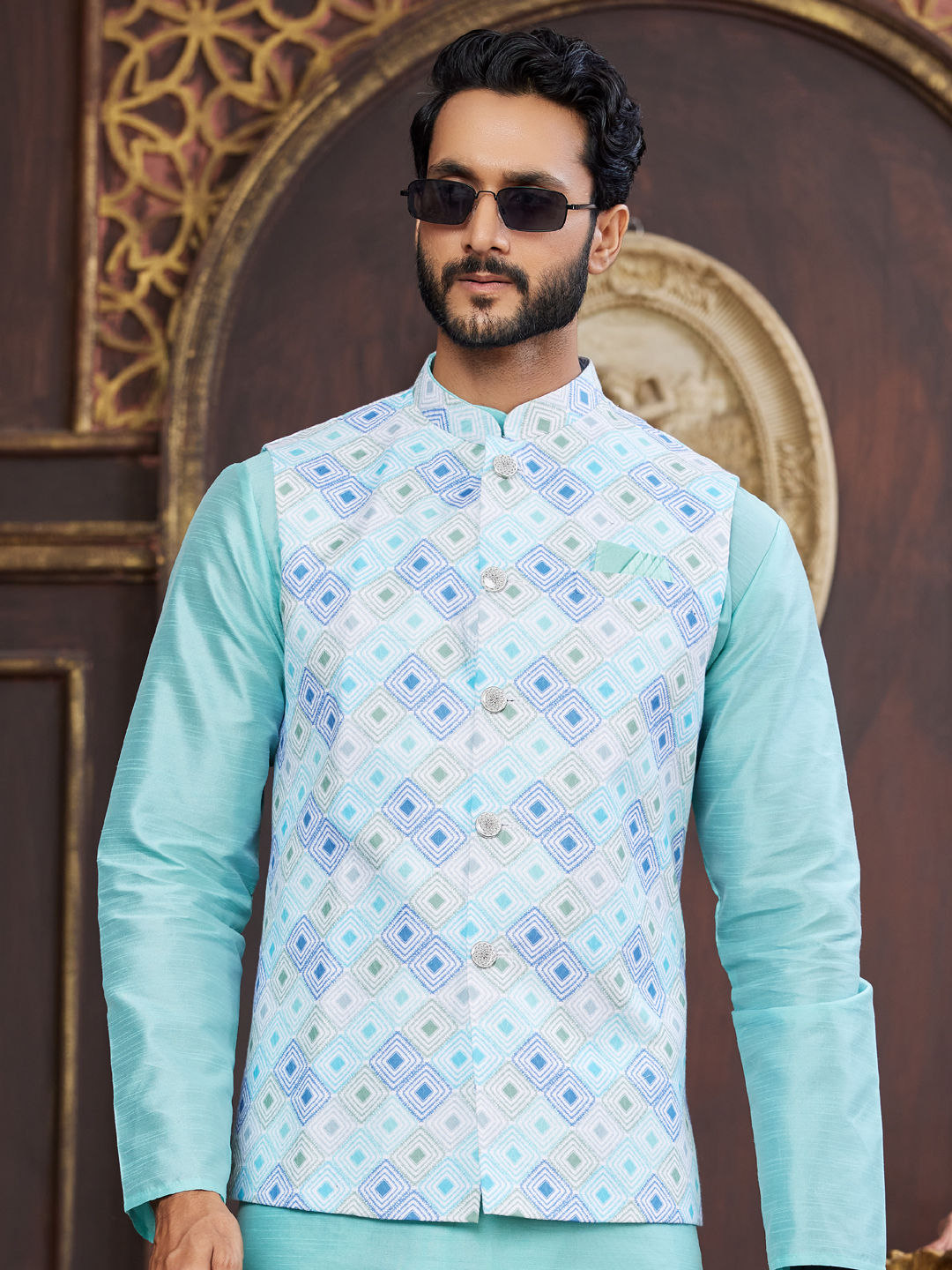 Art Silk Party Wear Nehru Jacket in Multicolor with Digital Print work