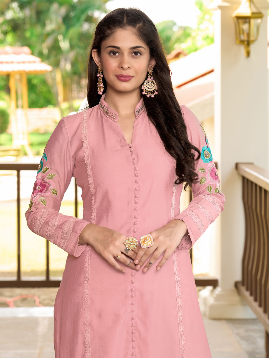 Pink and Majenta color Salwar Kameez in Art Silk fabric with Embroidered, Resham, Stone, Thread work