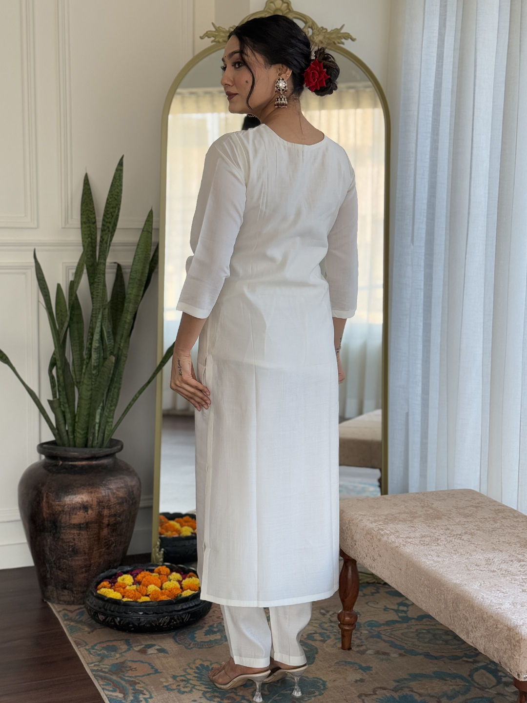 White and Off White color Salwar Kameez in Art Silk fabric with Embroidered, Thread work