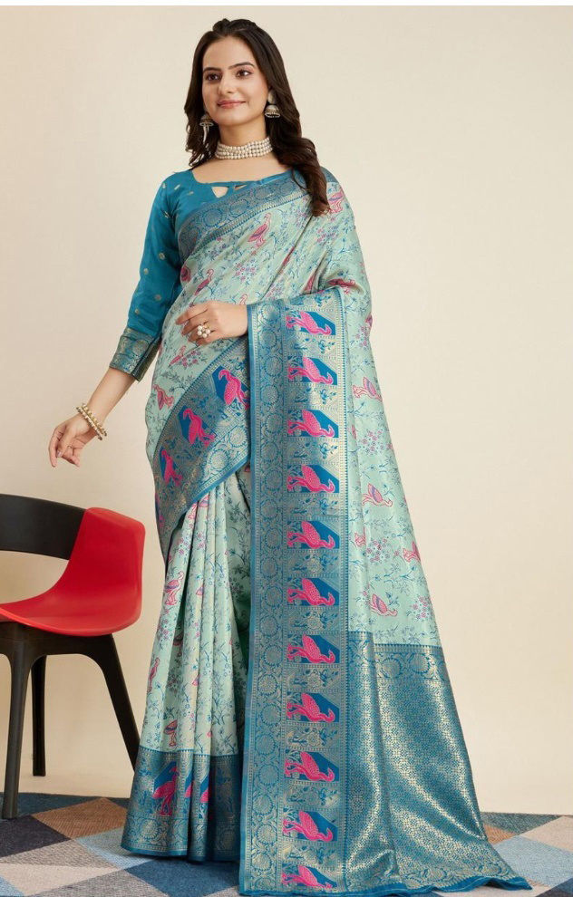 Blue color Saree in Art Silk fabric with Printed, Weaving work