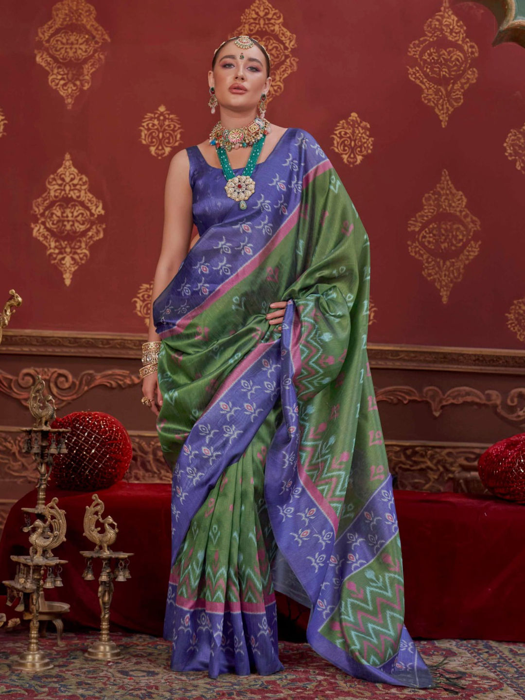 Blue, Green color Saree in Art Silk fabric with Printed work