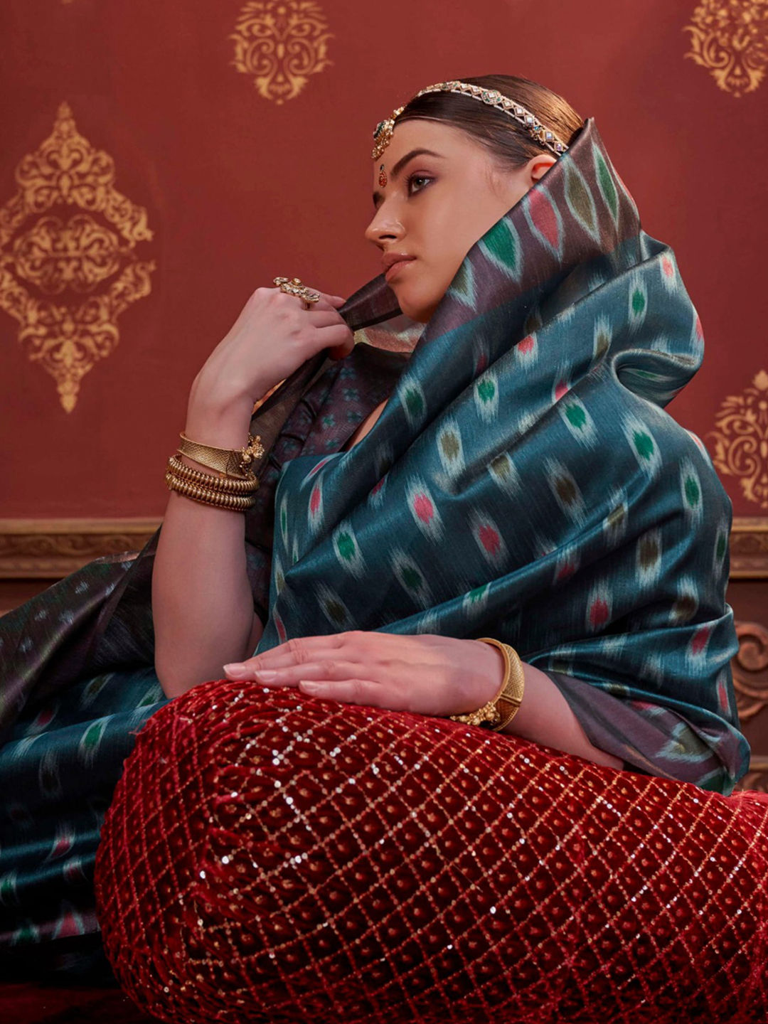 Art Silk Traditional Saree in Black and Grey with Printed work