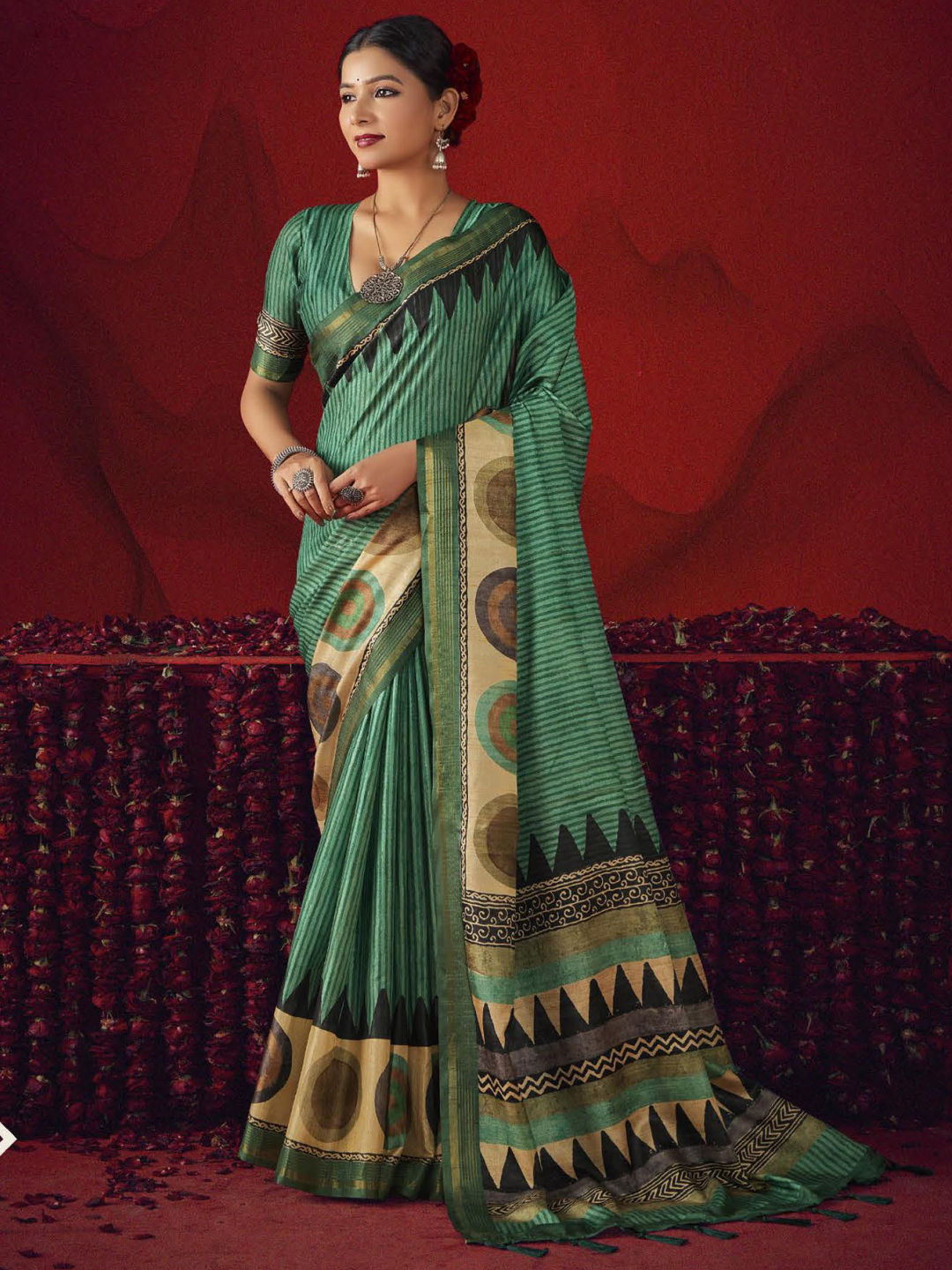 Art Silk Festive Saree in Beige and Brown with Printed work