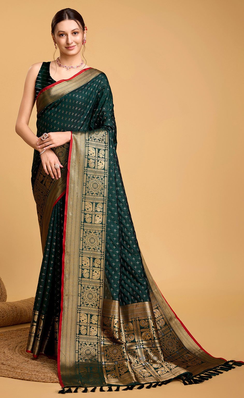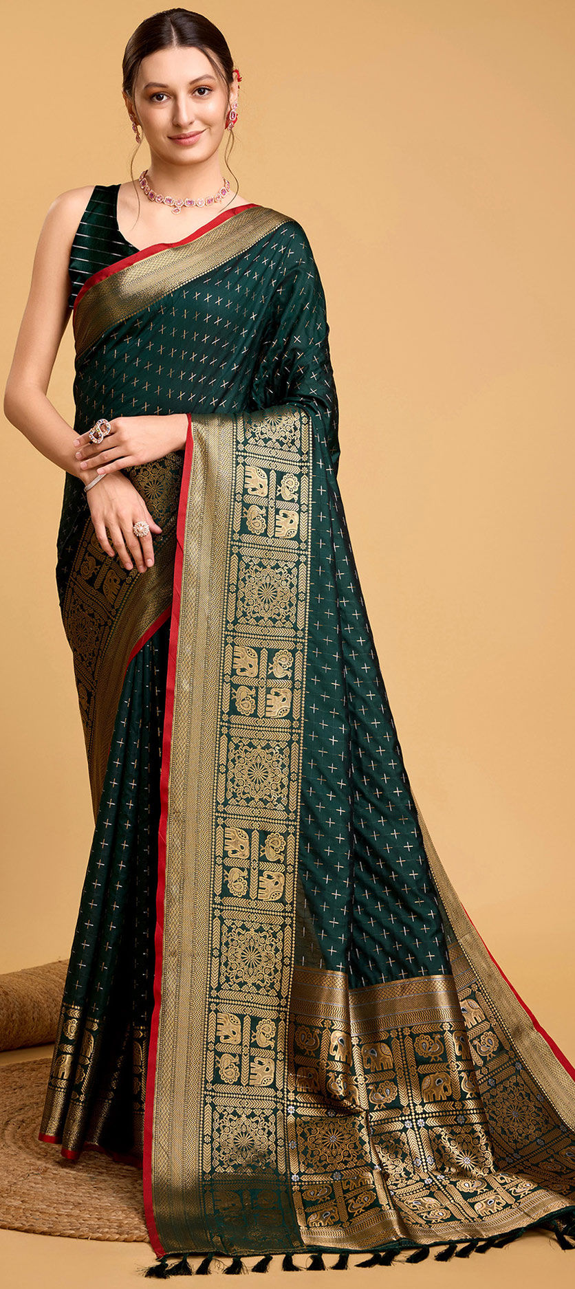 Green color Saree in Art Silk fabric with Weaving, Zari work
