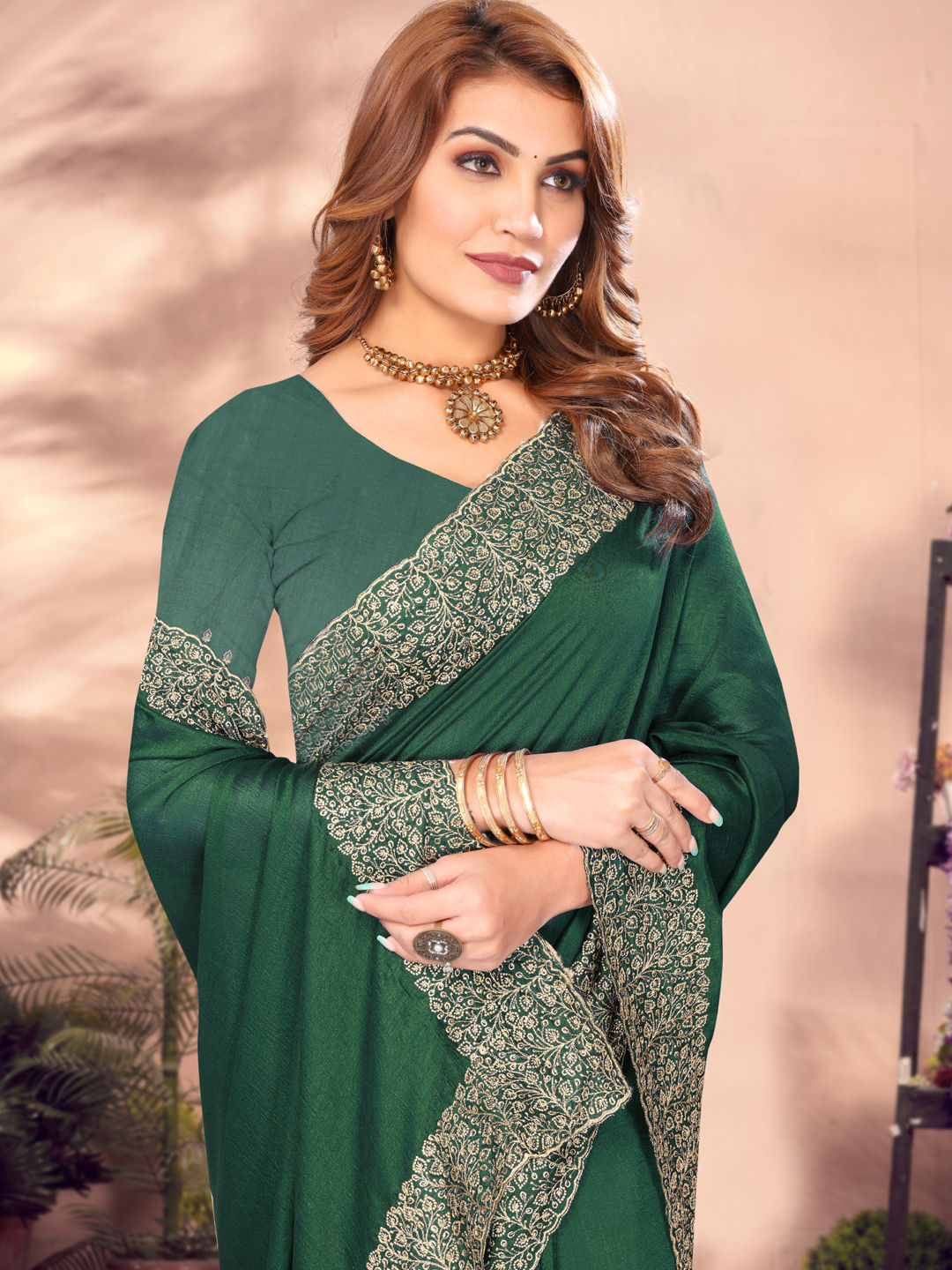 Green color Saree in Art Silk fabric with Embroidered, Zari work