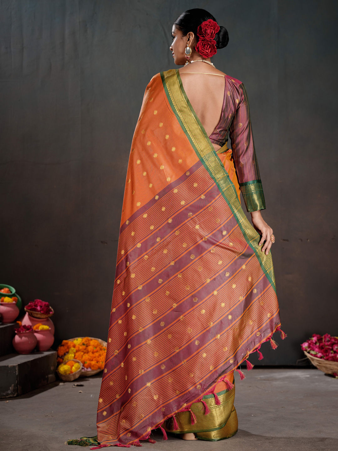 in Orange with Weaving work