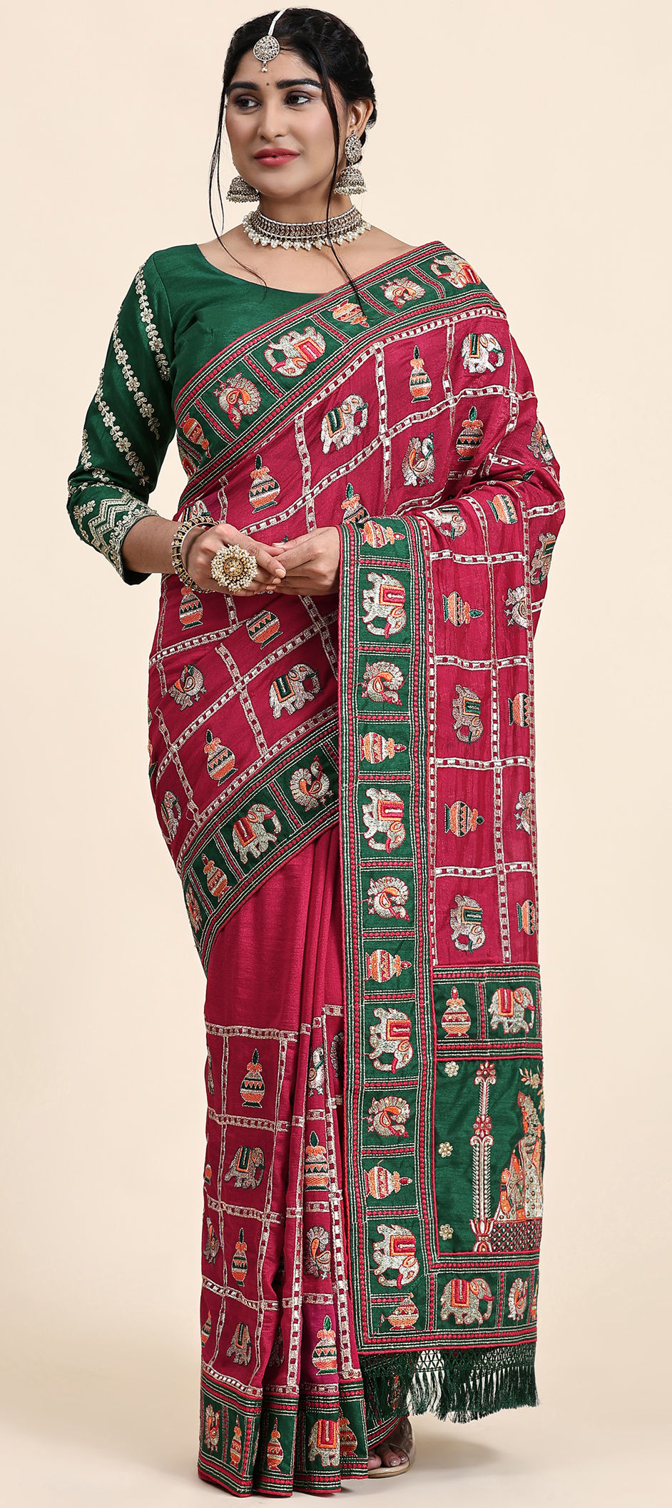 Pink and Majenta color Saree in Art Silk, Silk fabric with Embroidered, Stone, Thread work