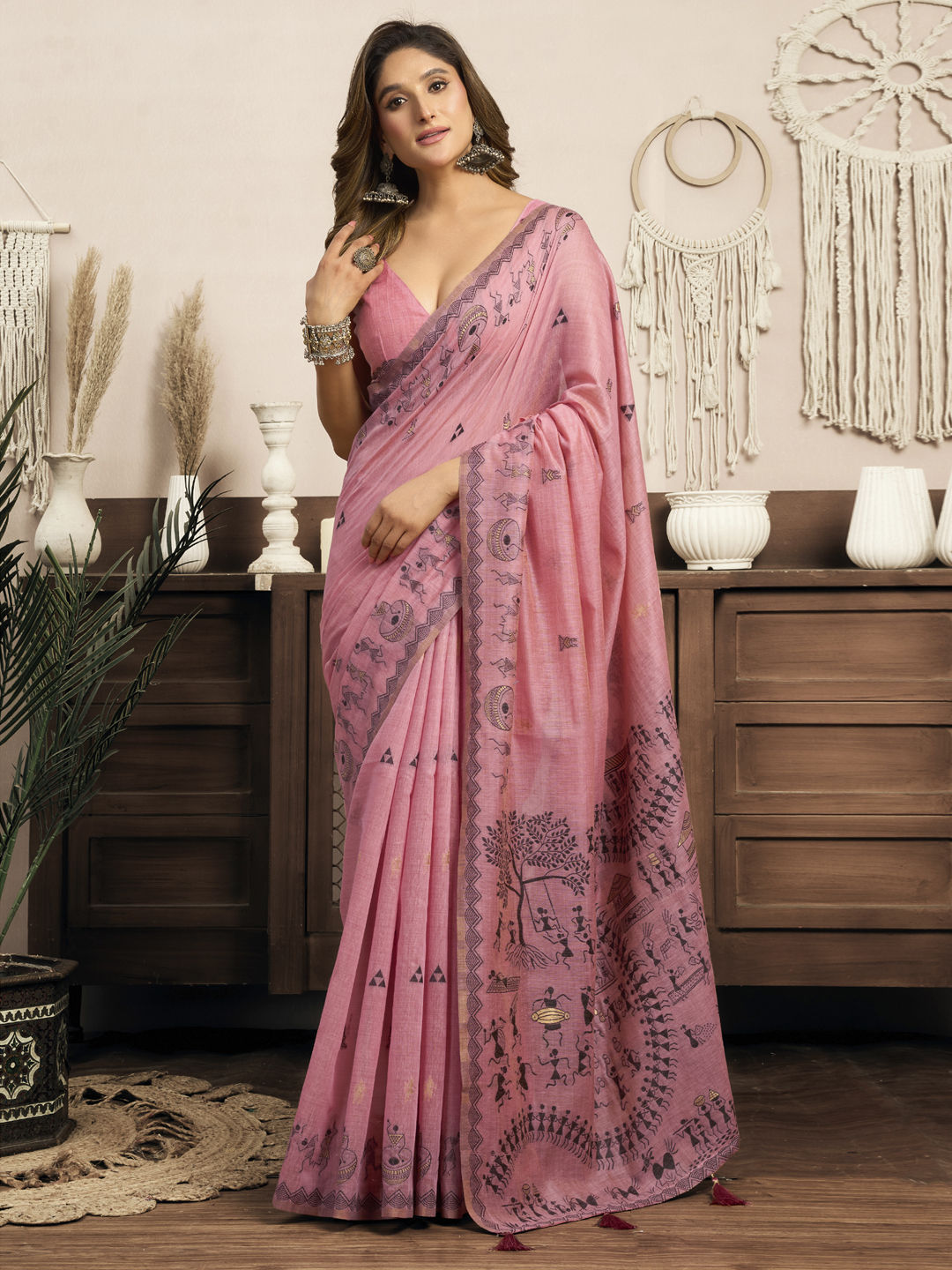 Art Silk Traditional Saree in Pink and Majenta with Printed work