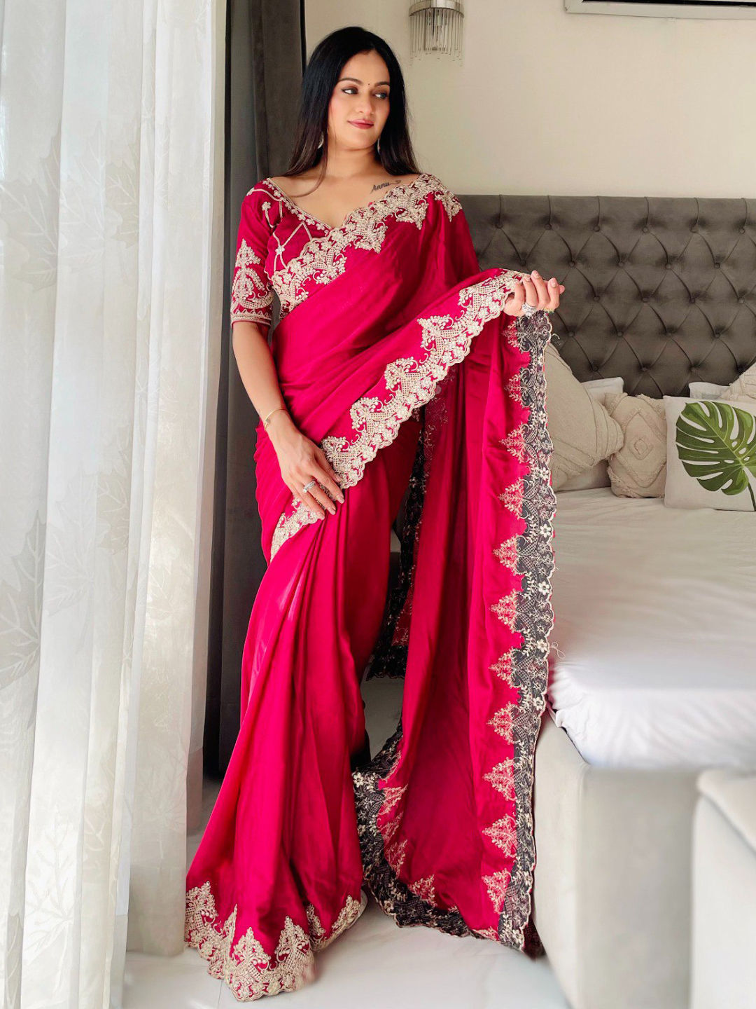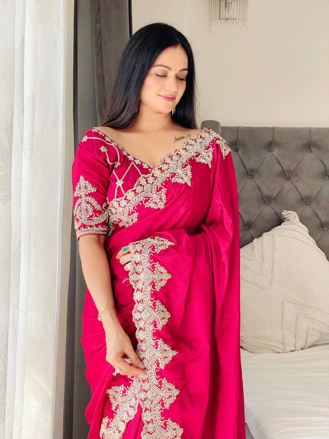 Pink and Majenta color Saree in Art Silk fabric with Embroidered, Thread work