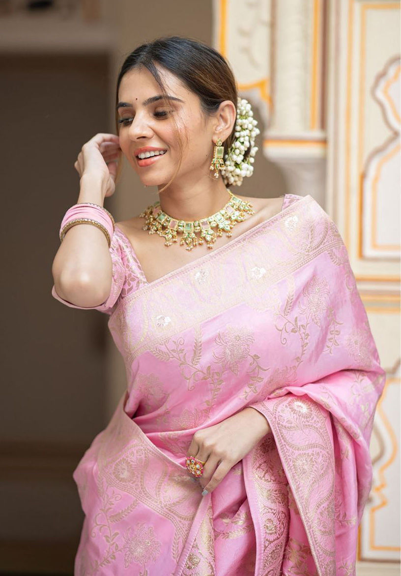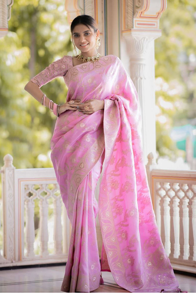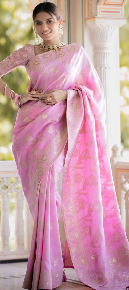 Pink and Majenta color Saree in Art Silk fabric with Weaving work