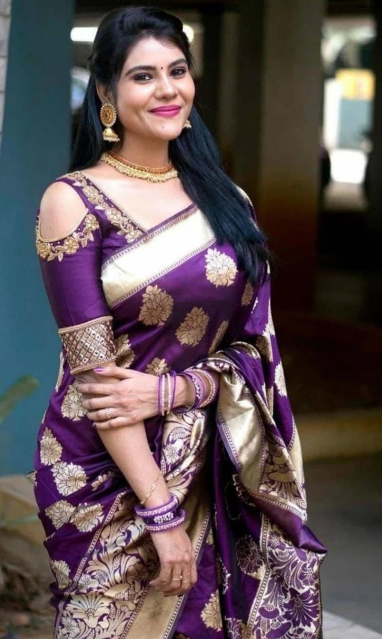 Purple and Violet color Saree in Art Silk, Silk fabric with Weaving work