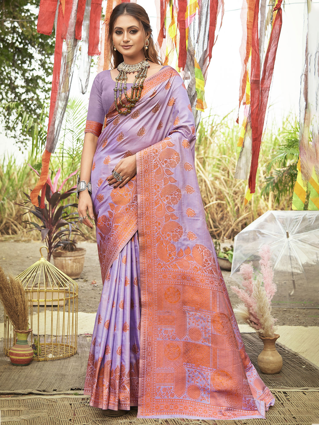 in Purple and Violet with Weaving work