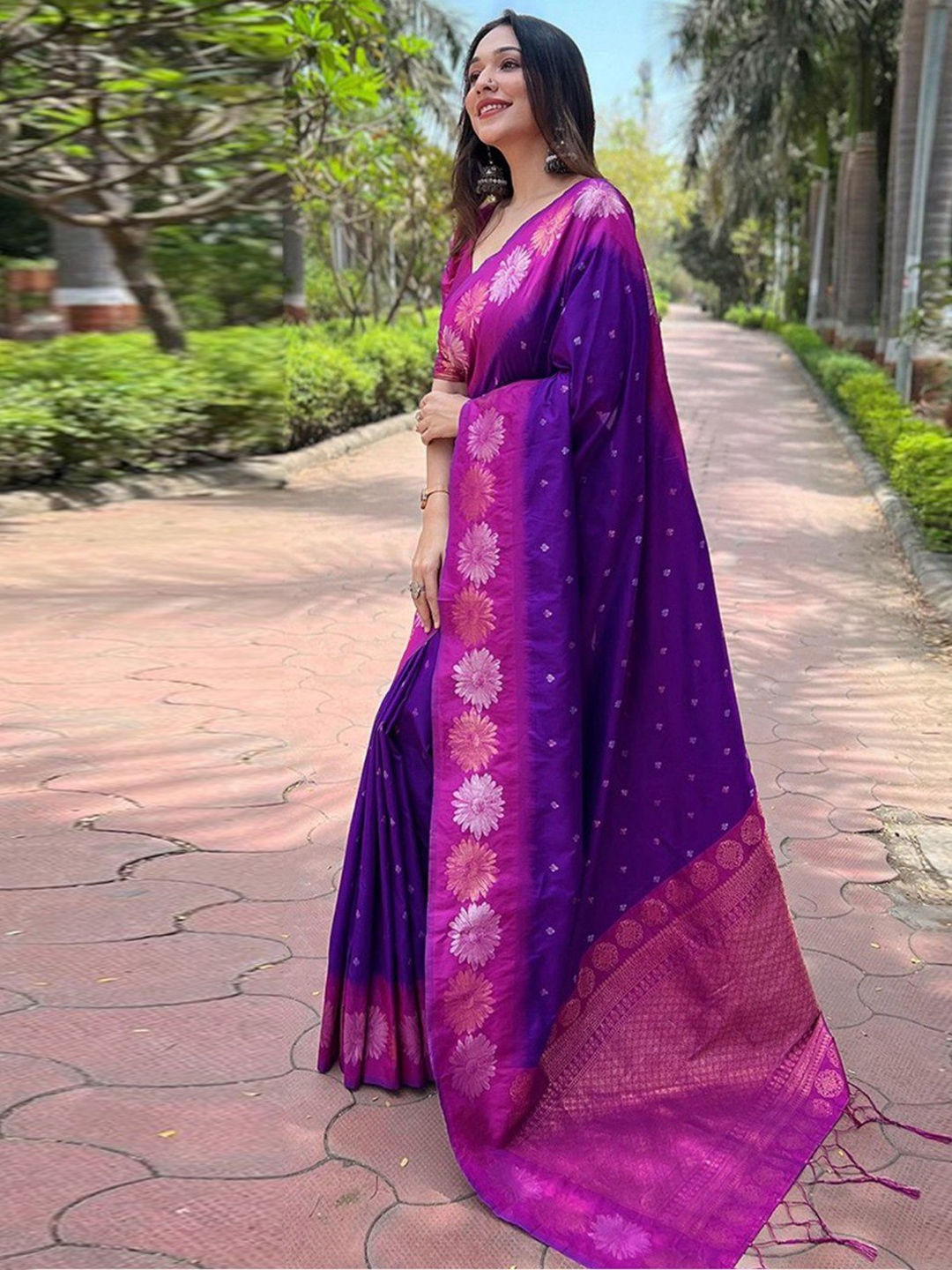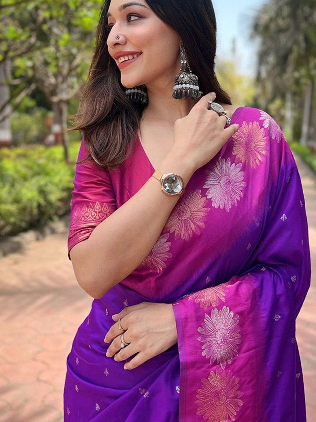 Art Silk Traditional Saree in Purple and Violet with Weaving work