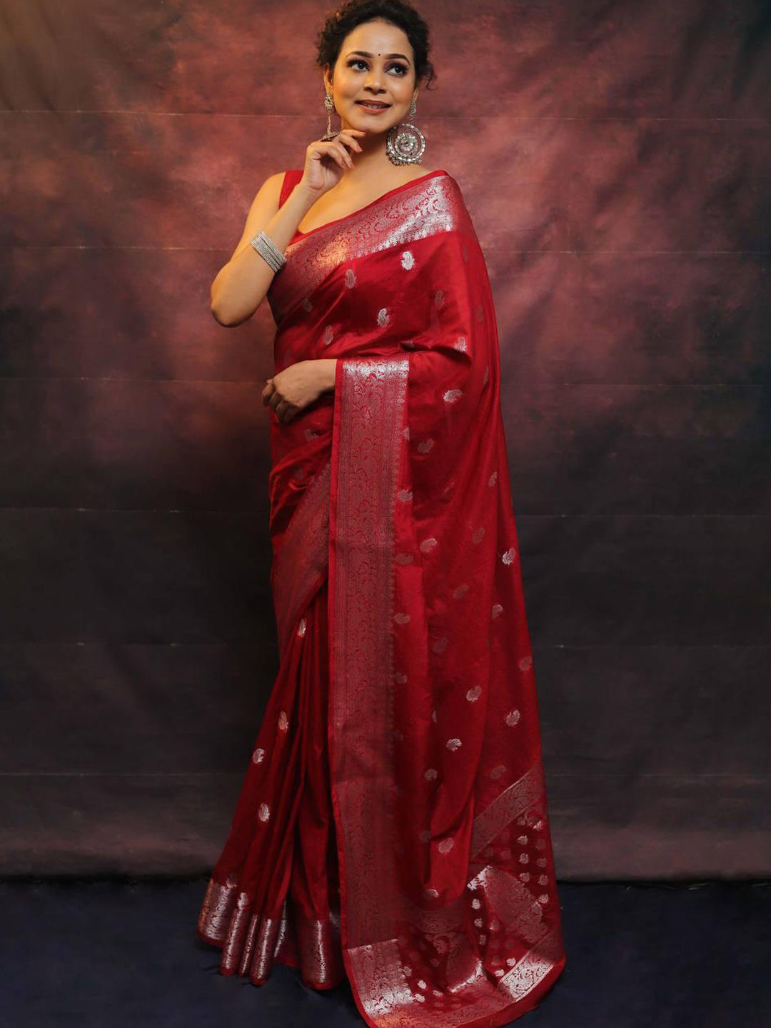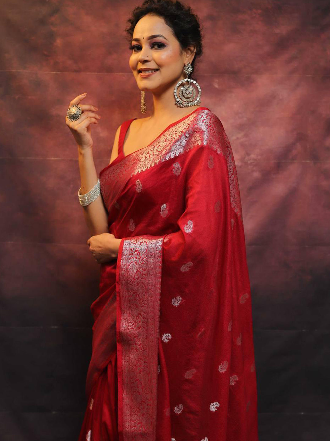 in Red and Maroon with Weaving work