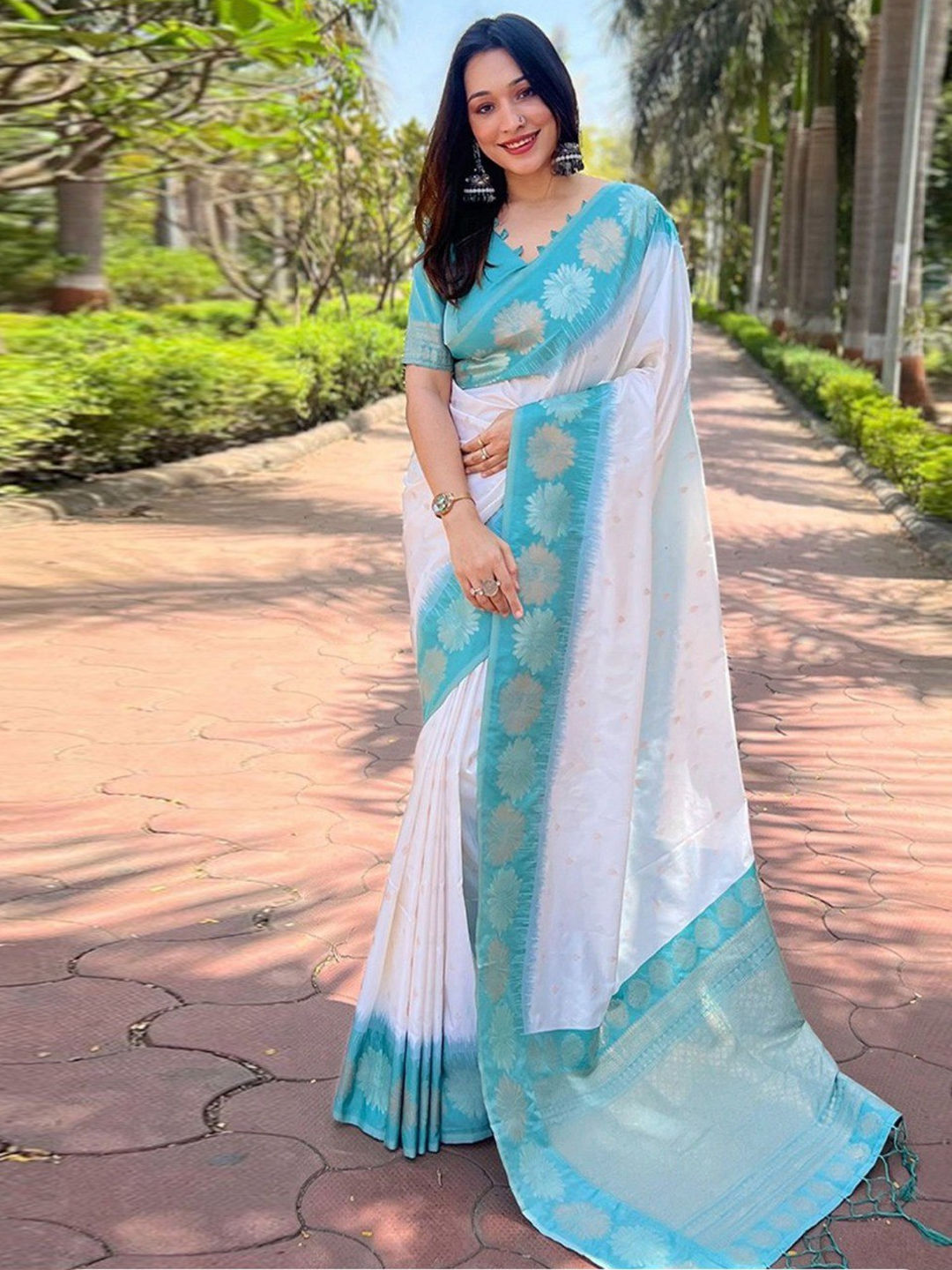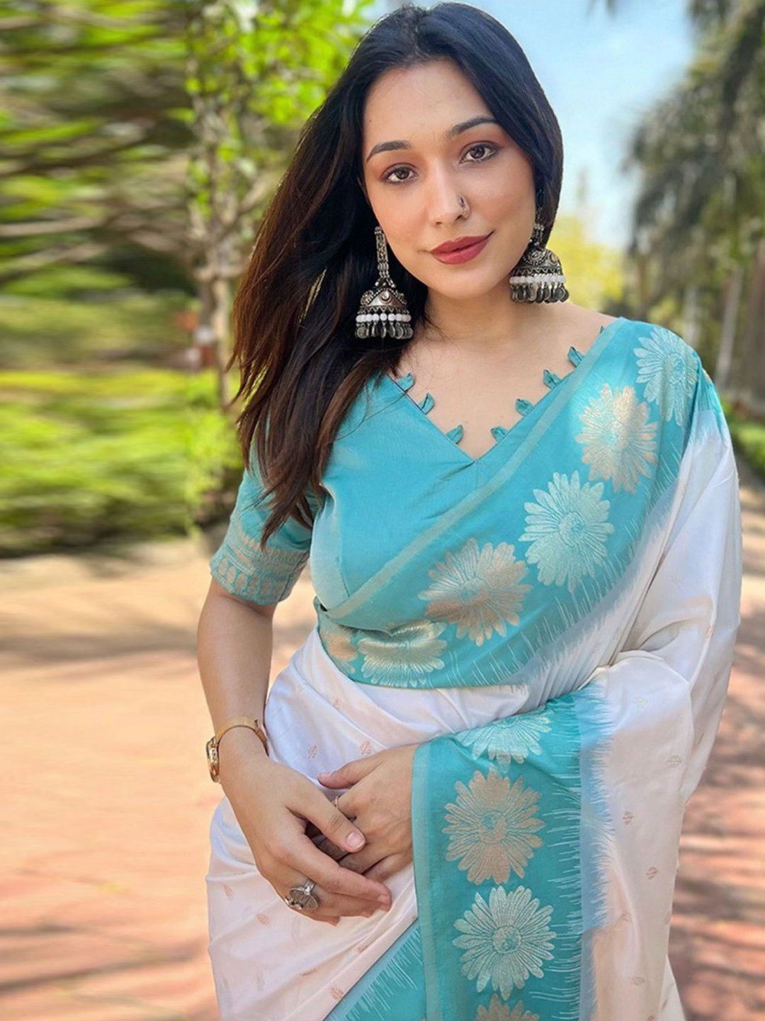 White and Off White color Saree in Art Silk fabric with Weaving work