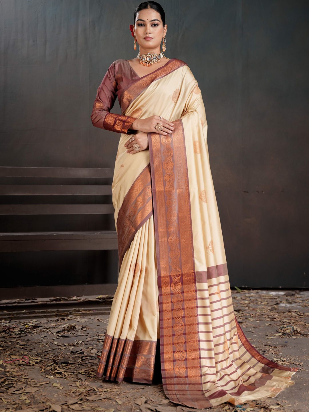 in White and Off White with Weaving work