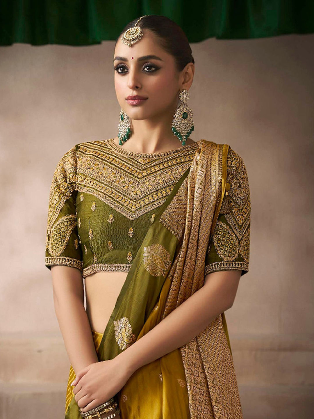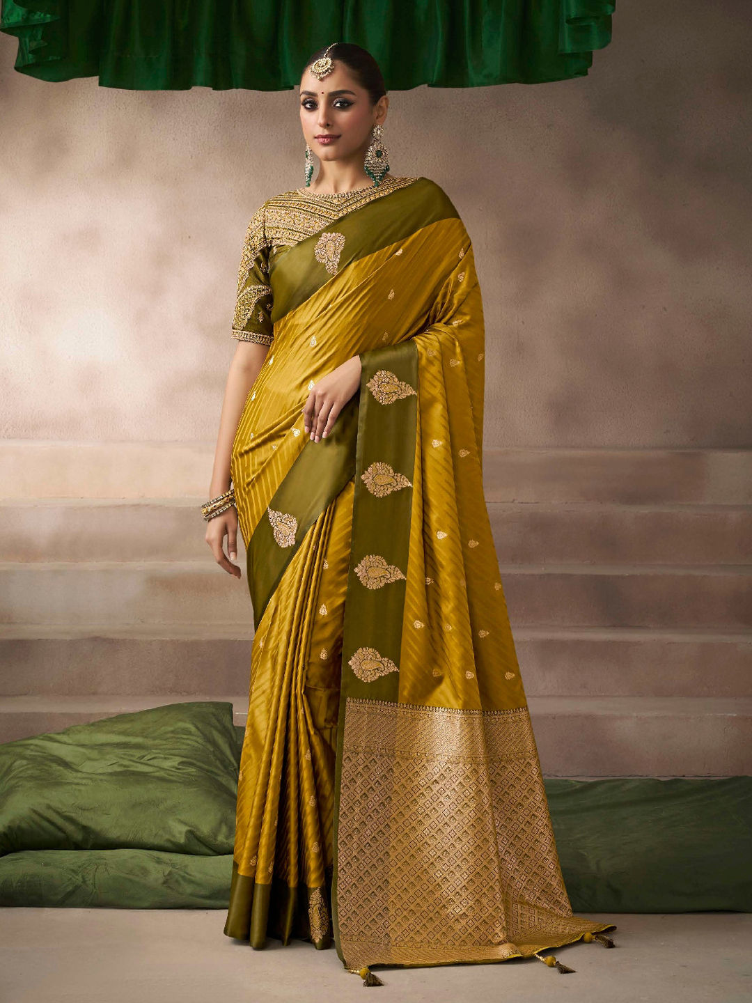 Green, Yellow color Saree in Art Silk fabric with Printed work