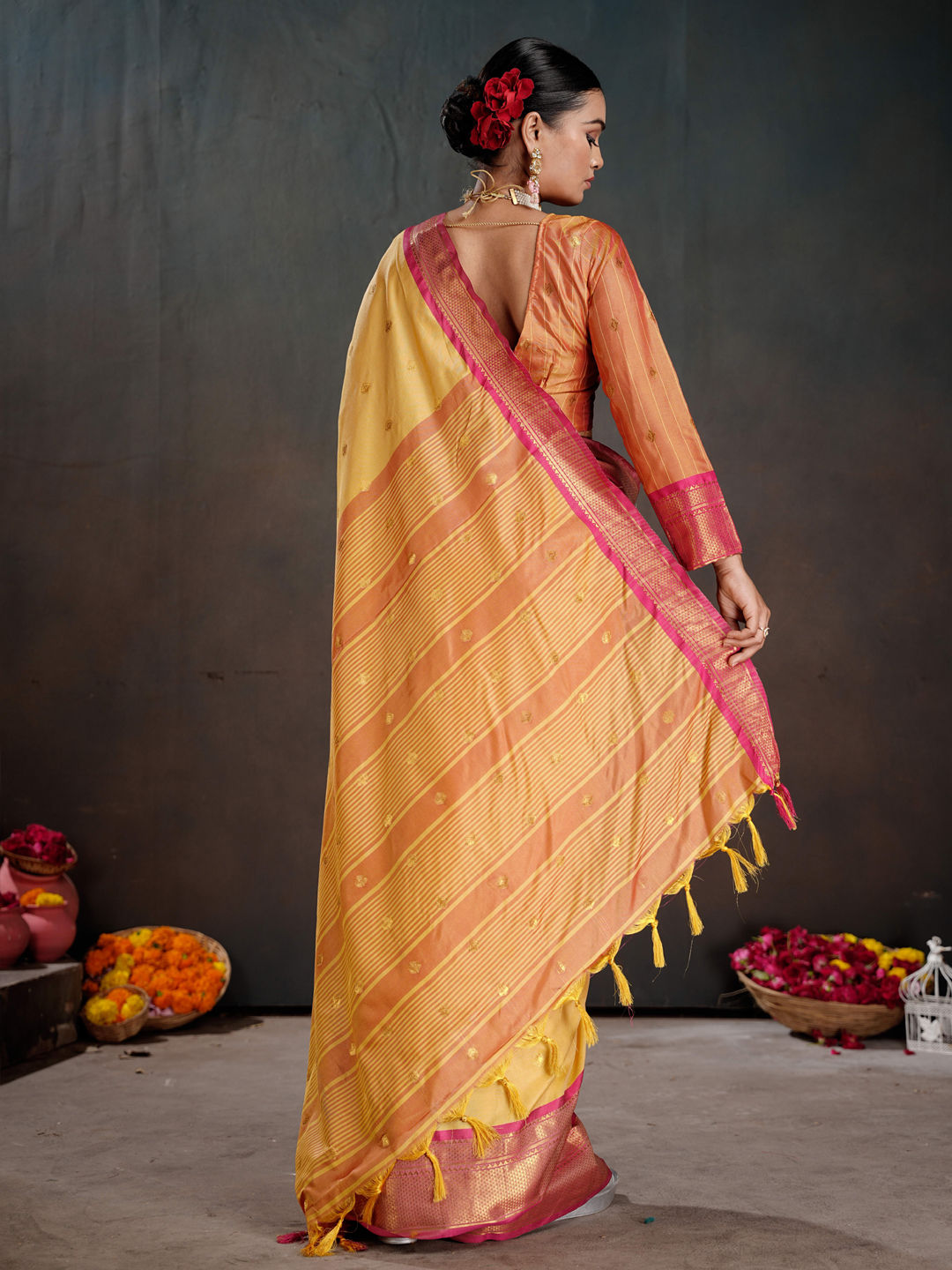 in Yellow with Weaving work