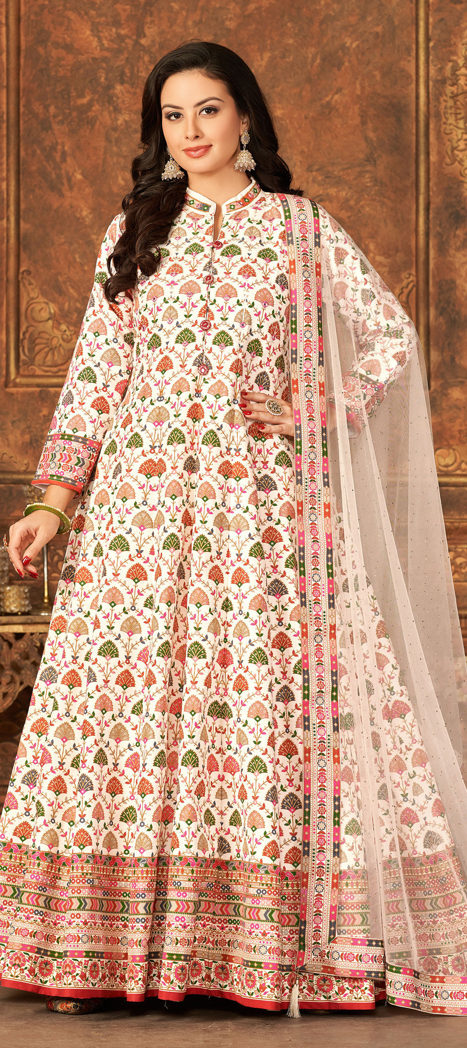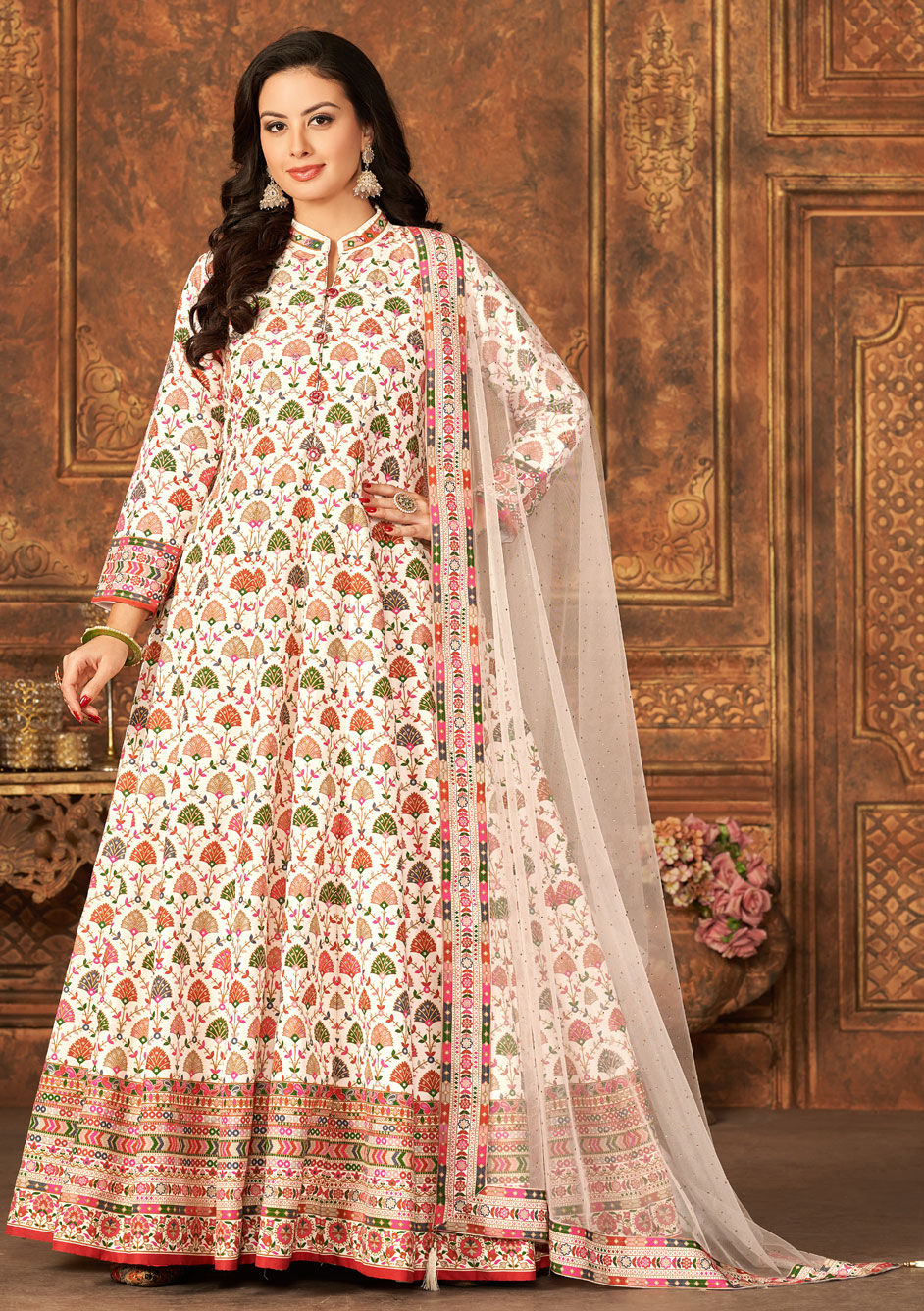 in White and Off White with Printed work