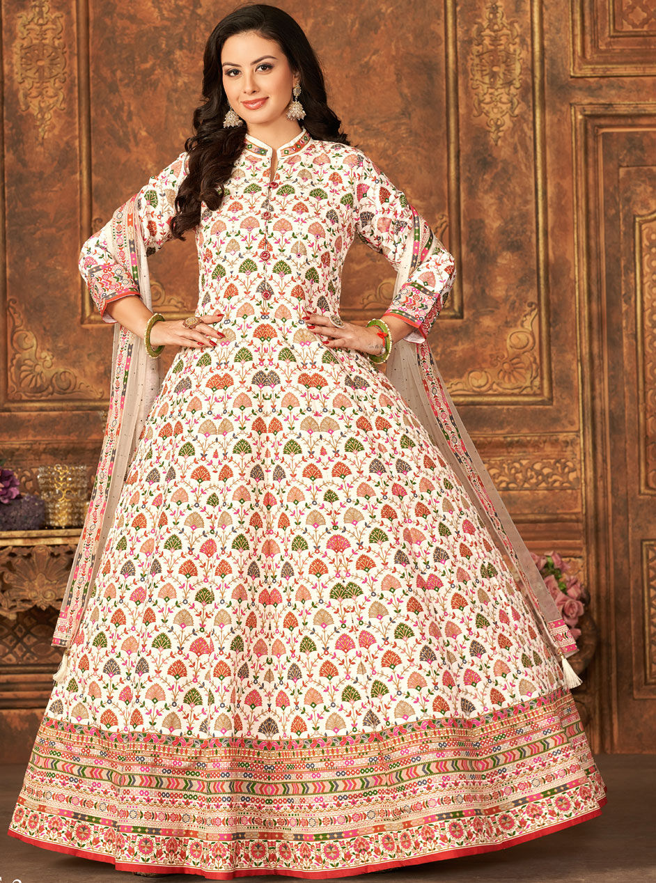 White and Off White color Gown in Art Silk fabric with Printed work