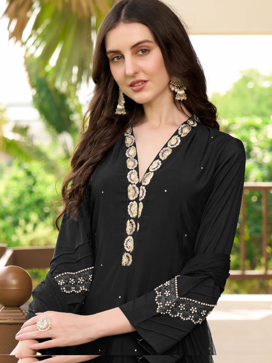 Black and Grey color Salwar Kameez in Art Silk fabric with Bugle Beads, Embroidered, Resham, Thread work