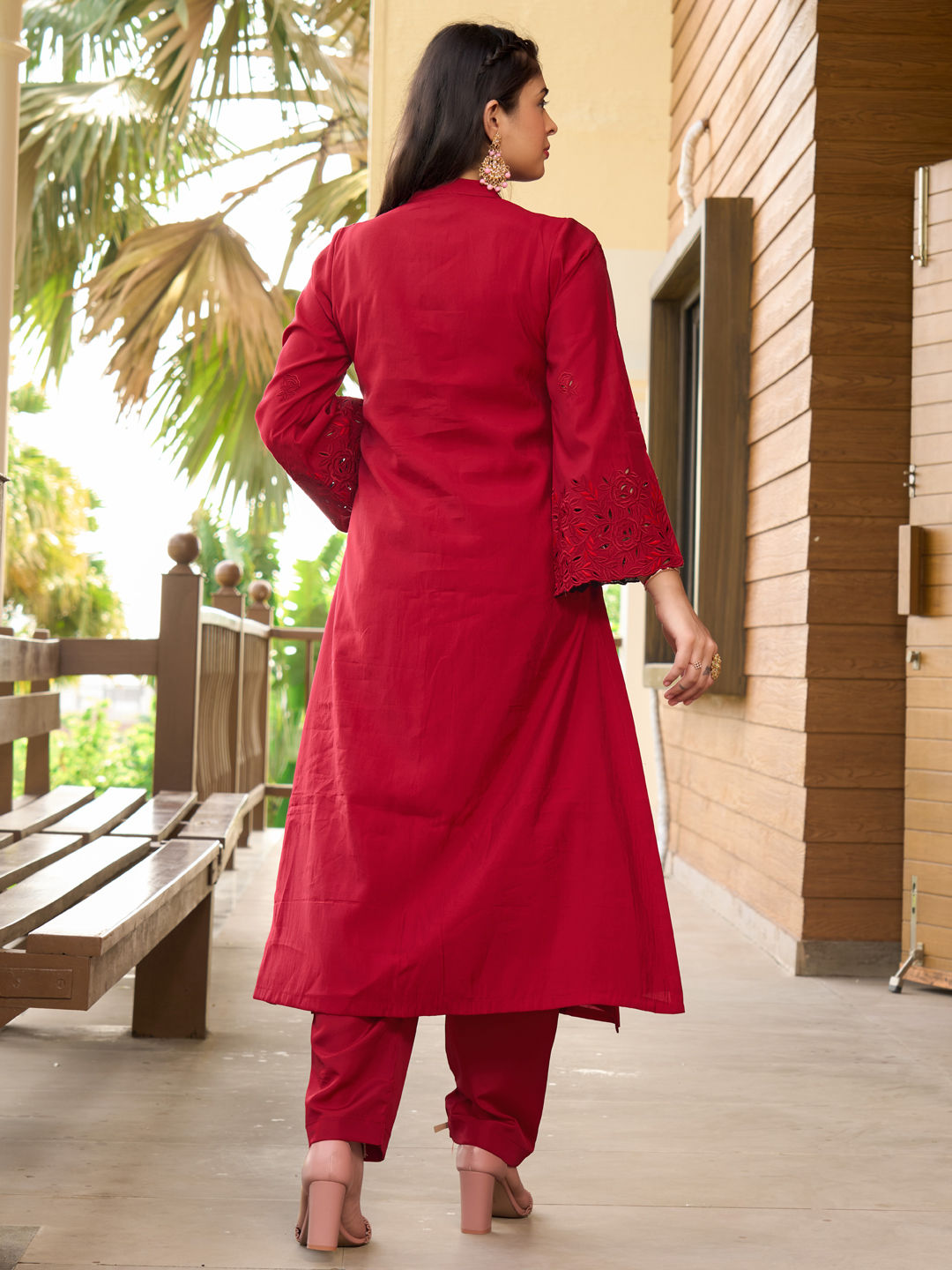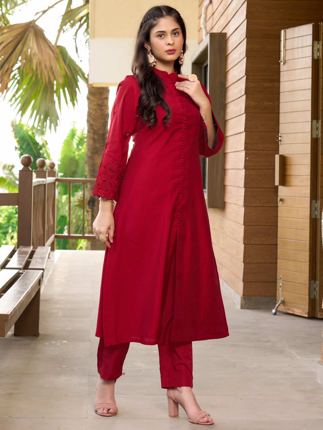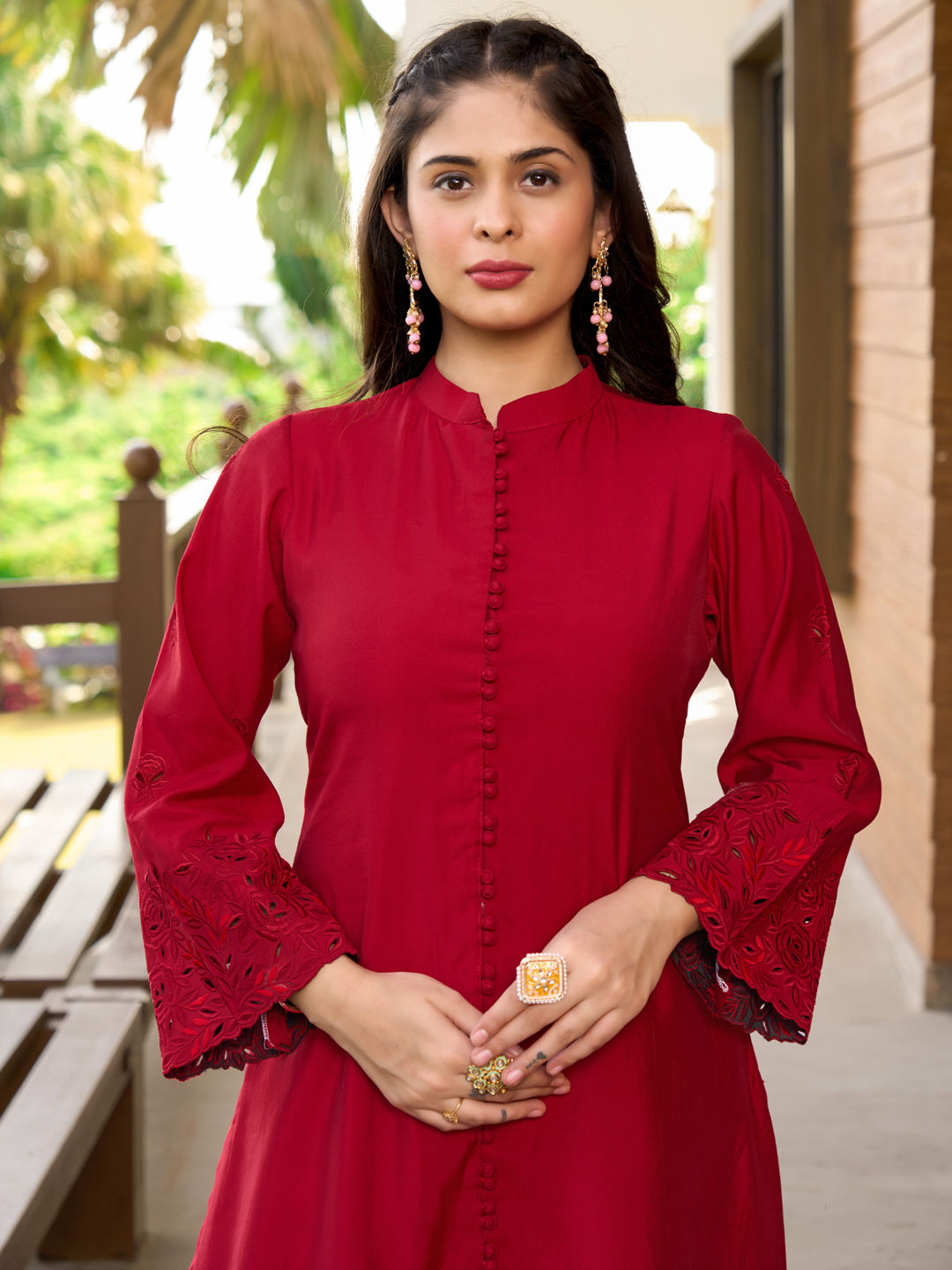 in Red and Maroon with Thread work