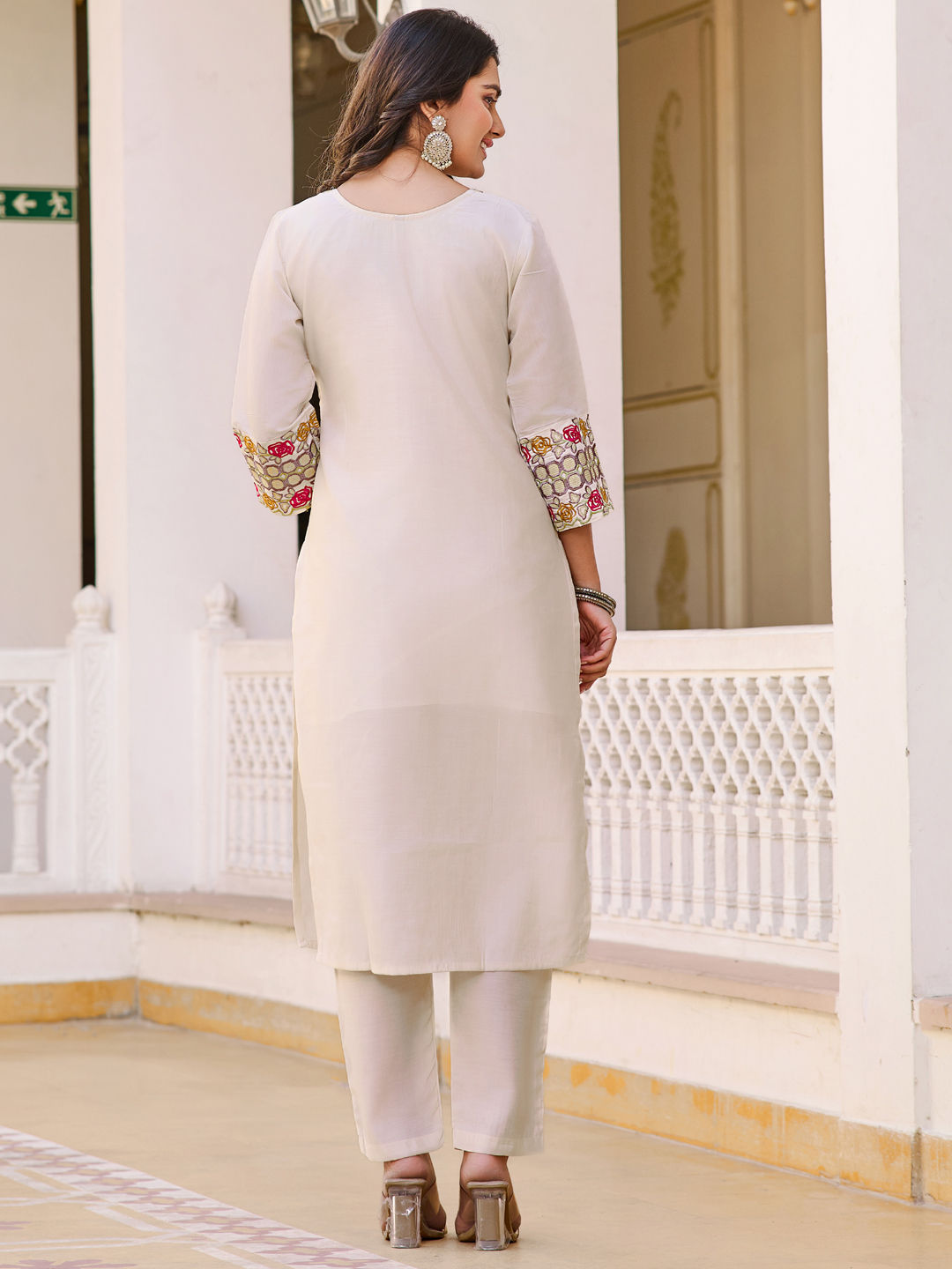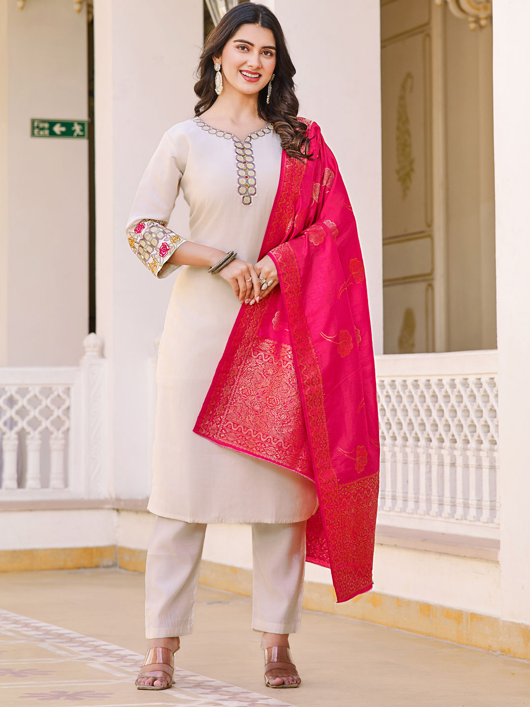 White and Off White color Salwar Kameez in Art Silk fabric with Embroidered, Thread work