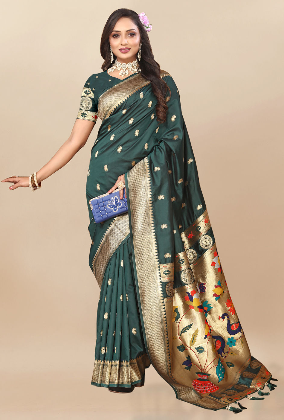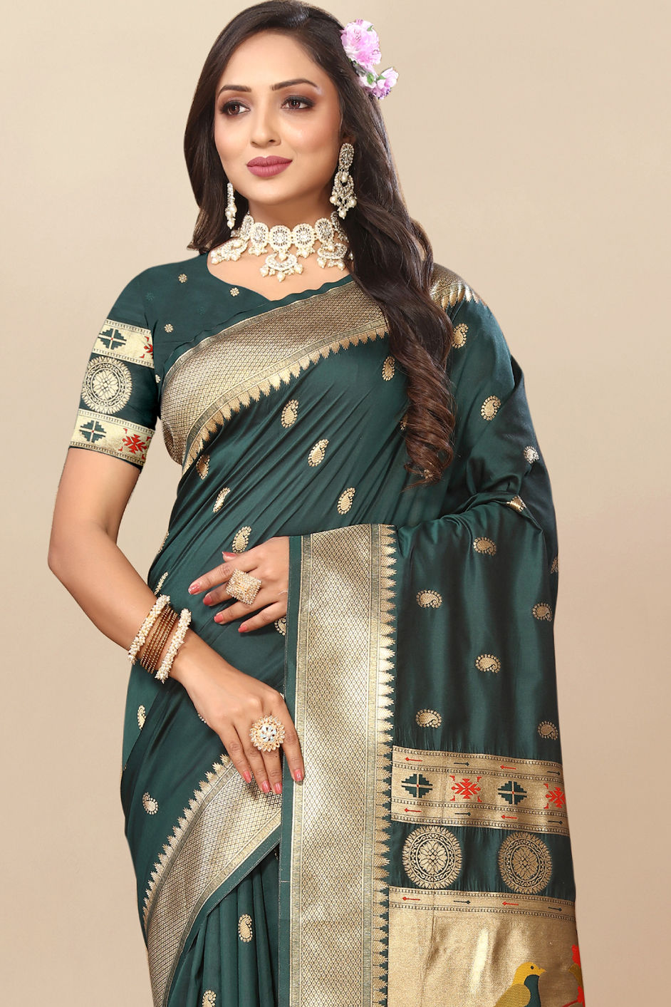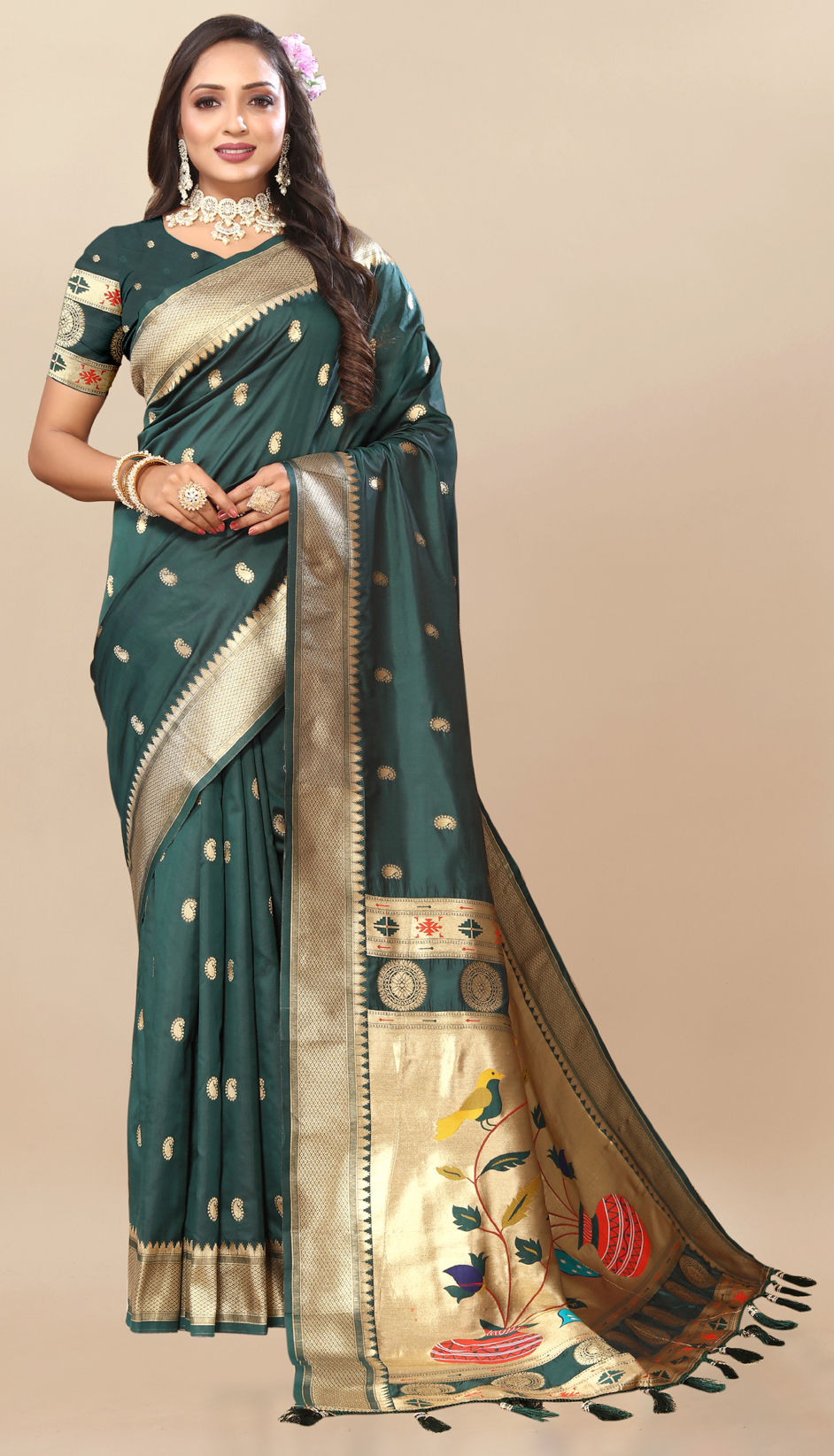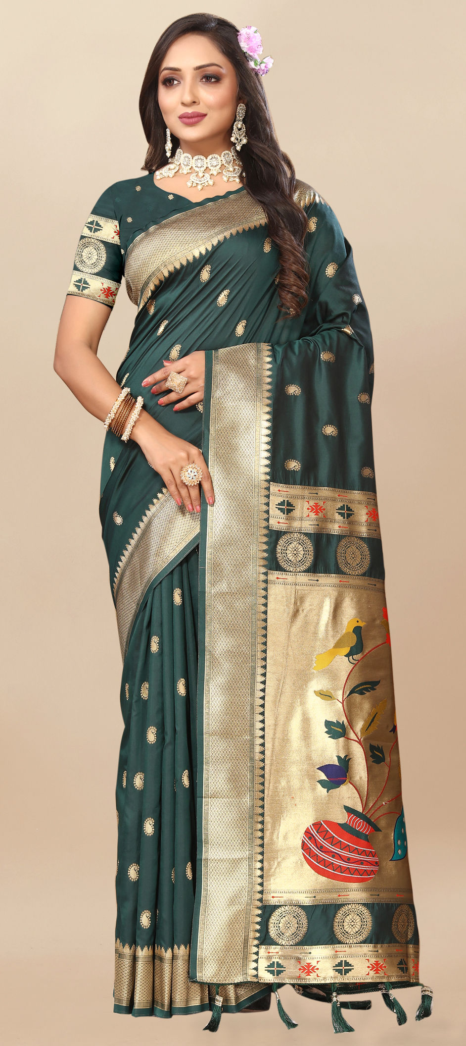 Green color Saree in Art Silk, Silk fabric with Weaving, Zari work