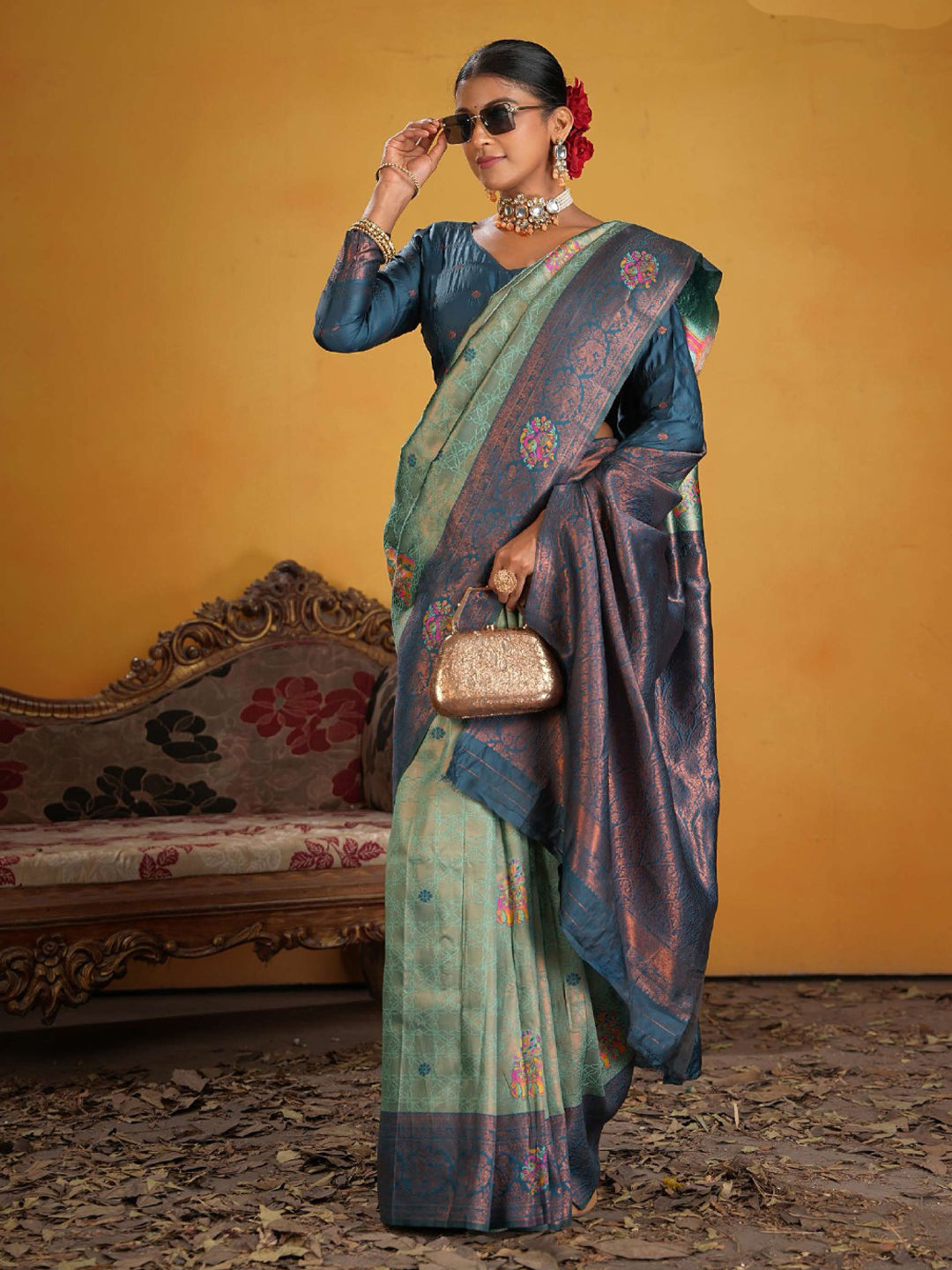 Art Silk Traditional Saree in Black and Grey with Weaving work