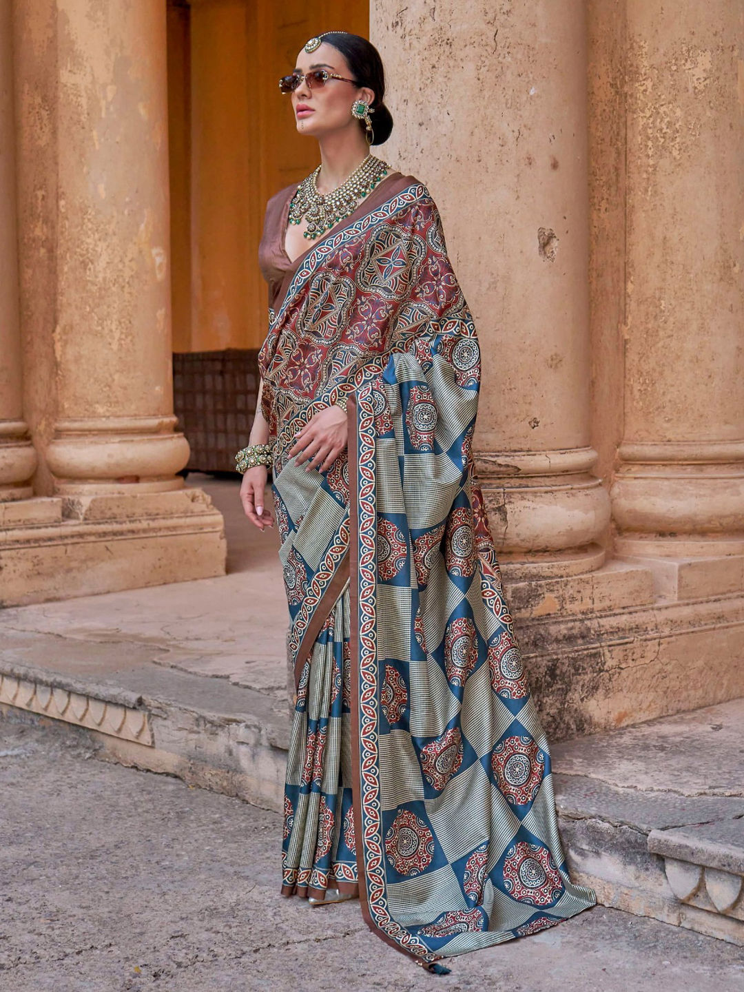 Art Silk Traditional Saree in Red and Maroon with Printed work