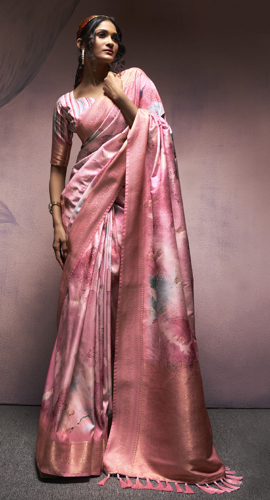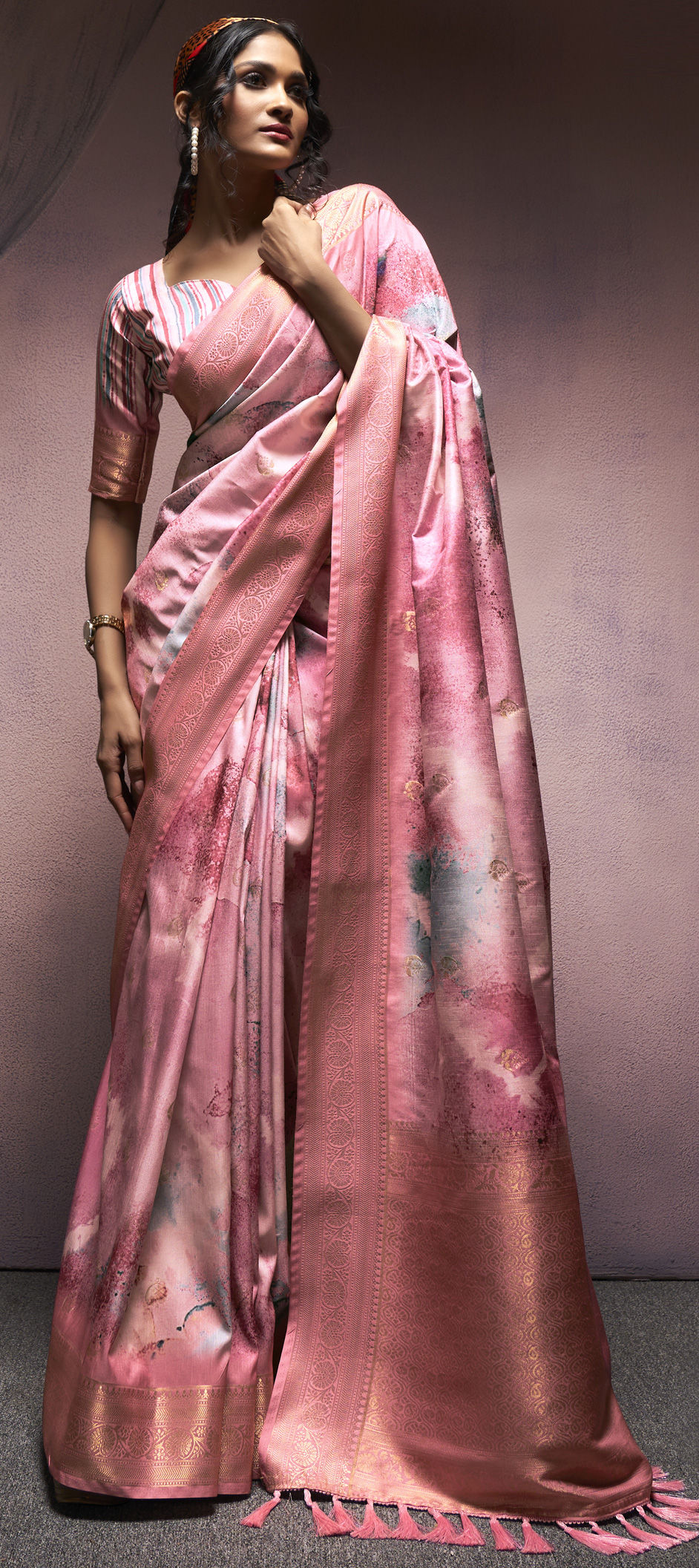 Pink and Majenta color Saree in Art Silk fabric with Digital Print, Weaving work