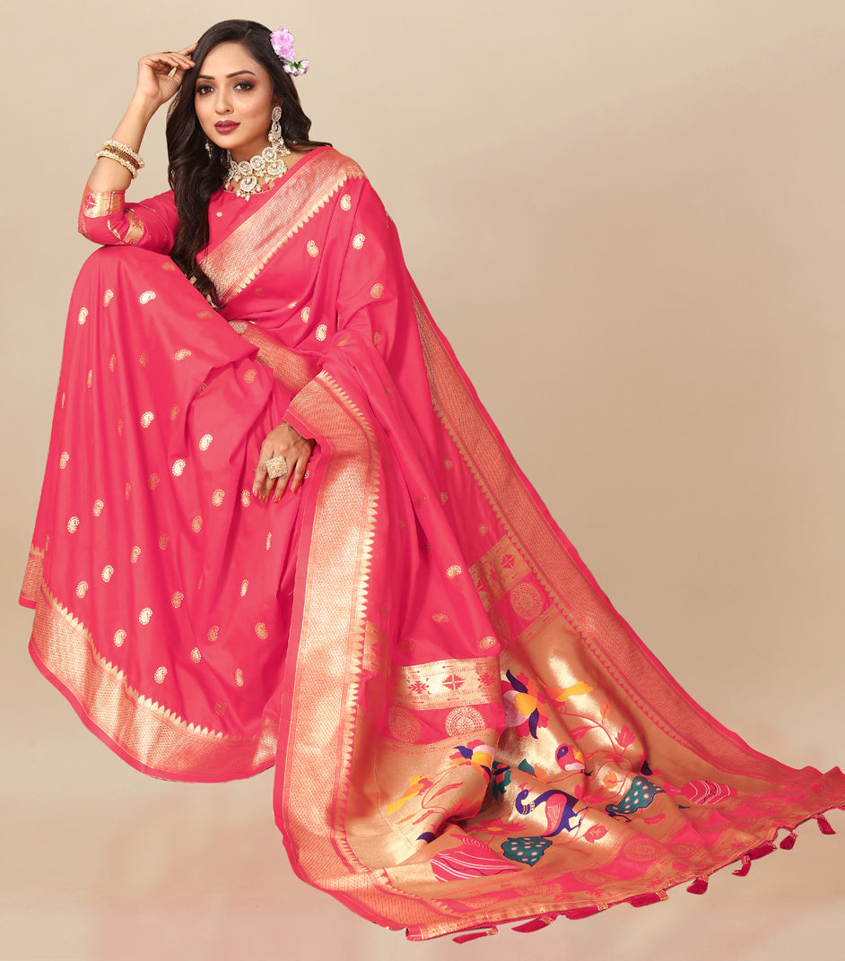 Pink and Majenta color Saree in Art Silk, Silk fabric with Weaving, Zari work