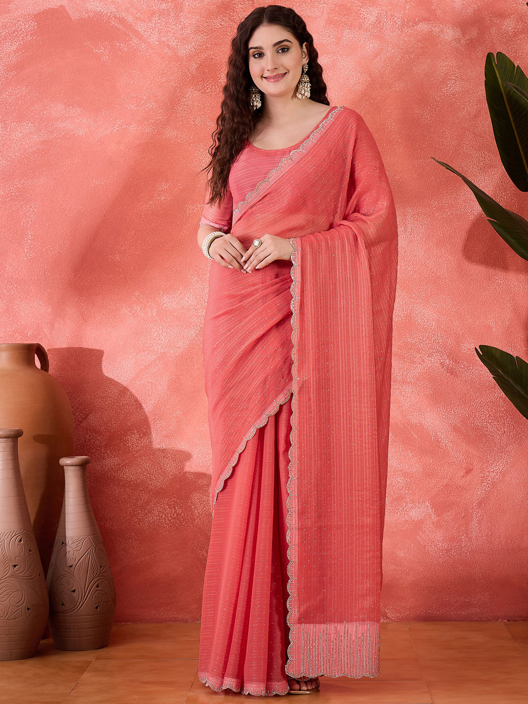 Art Silk Festive Saree in Pink and Majenta with Zircon work