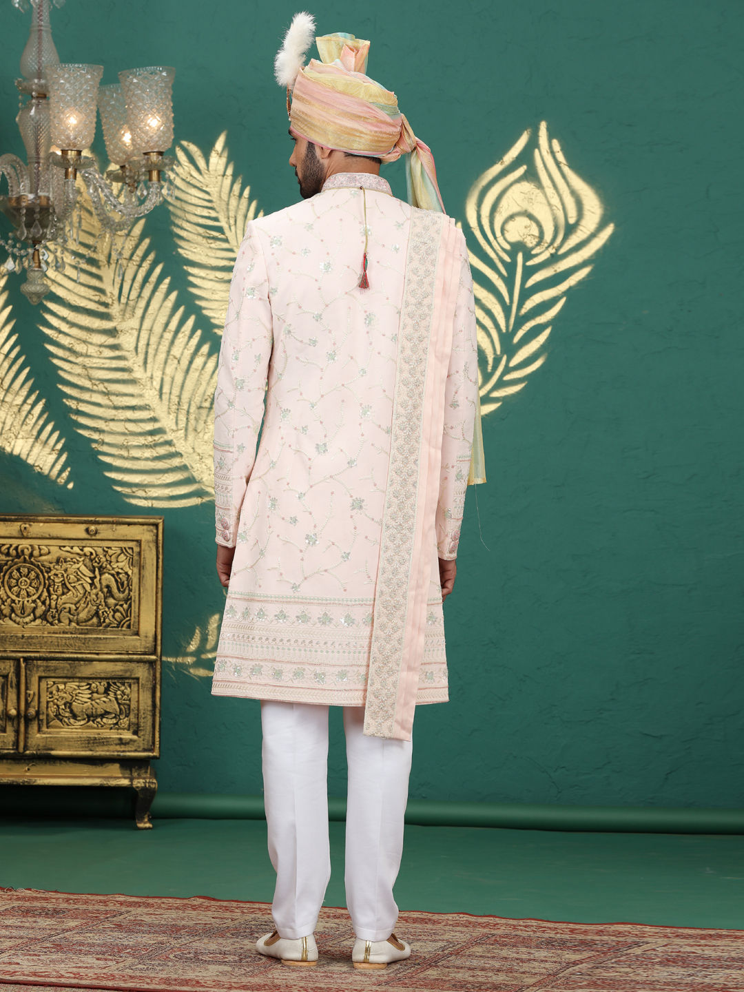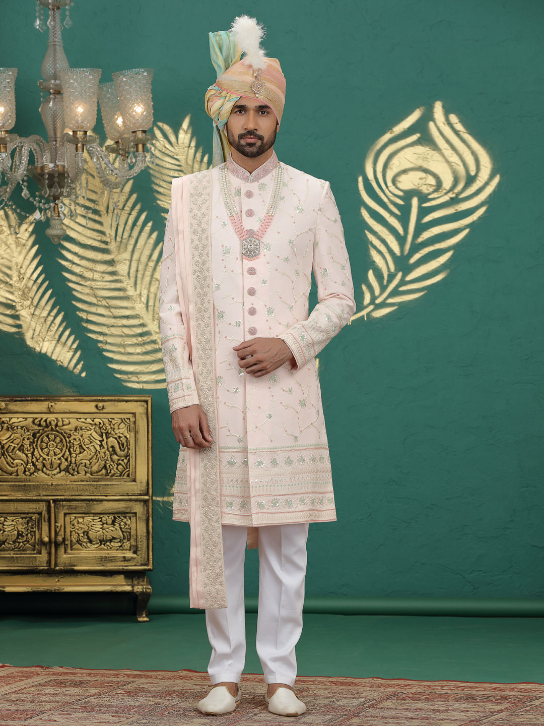 Pink and Majenta color Sherwani in Art Silk fabric with Embroidered work