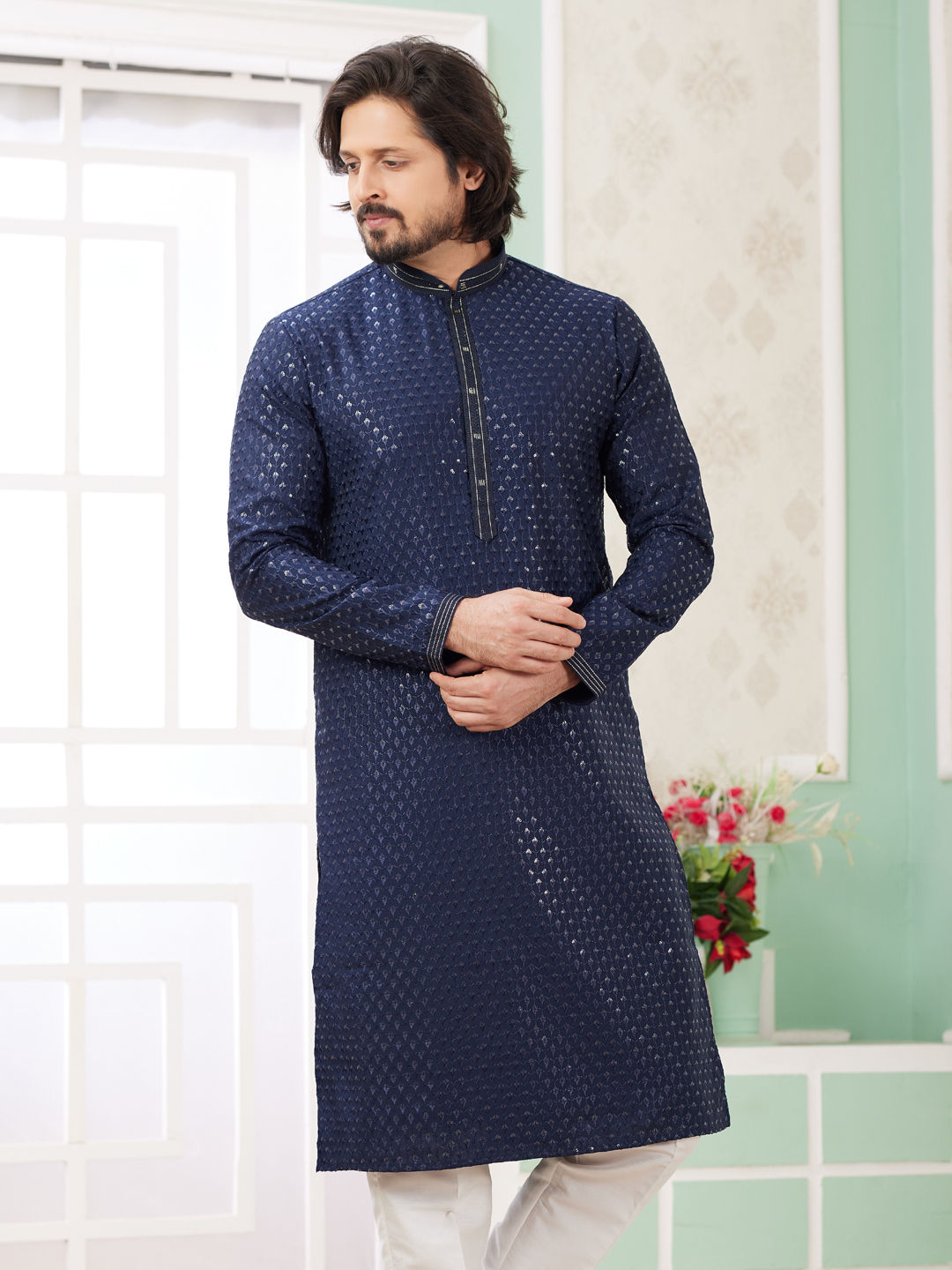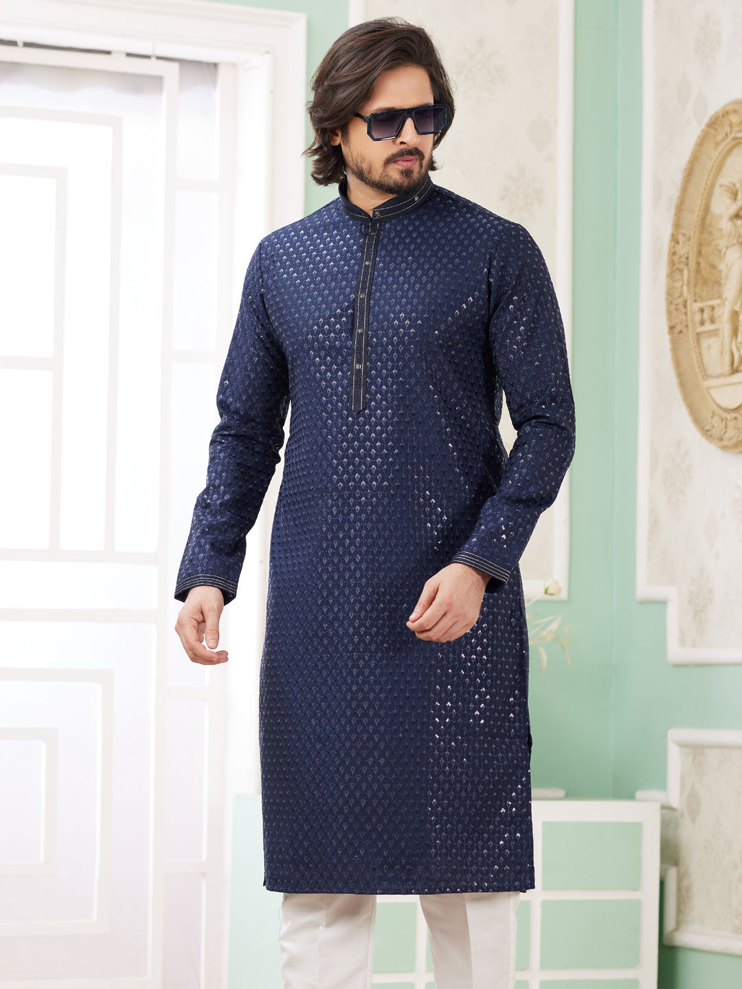 Blue color Kurta in Art Silk fabric with Embroidered, Thread work